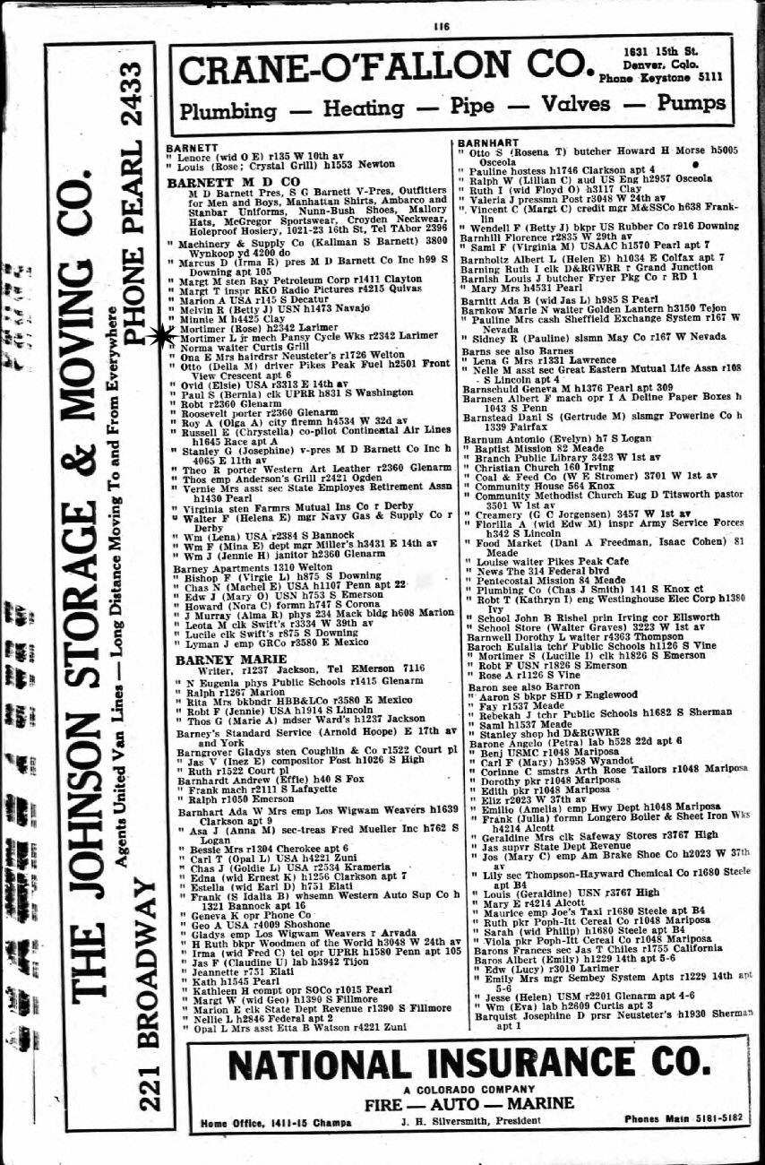 September 12, 1918 - 2611 Stout, Denver, Denver County, Colorado.