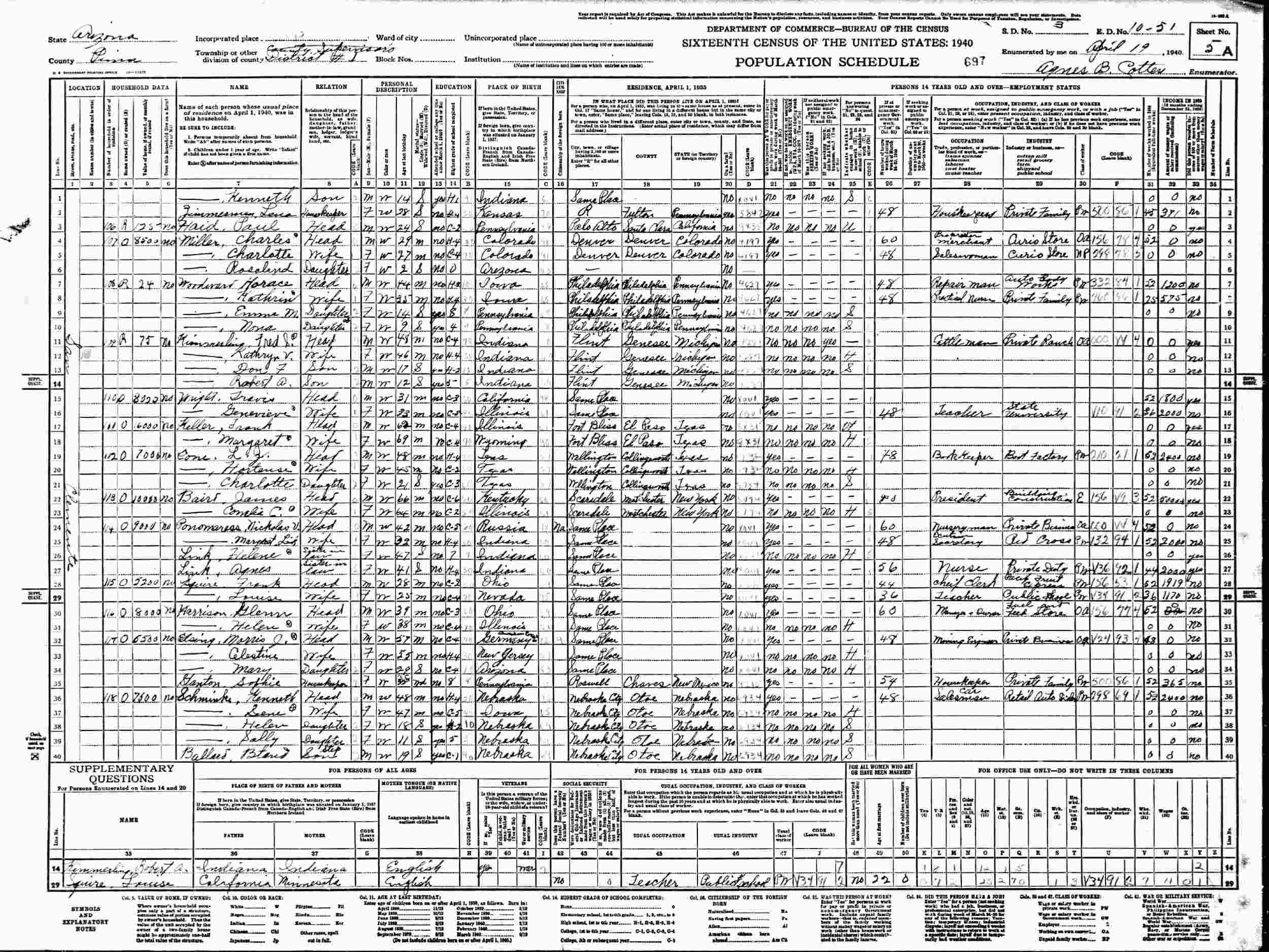 April 19, 1940 - San Clemente, District 1, Supervisor's District 3, Enumeration District 10-41, Tucson, Pima County, Arizona.