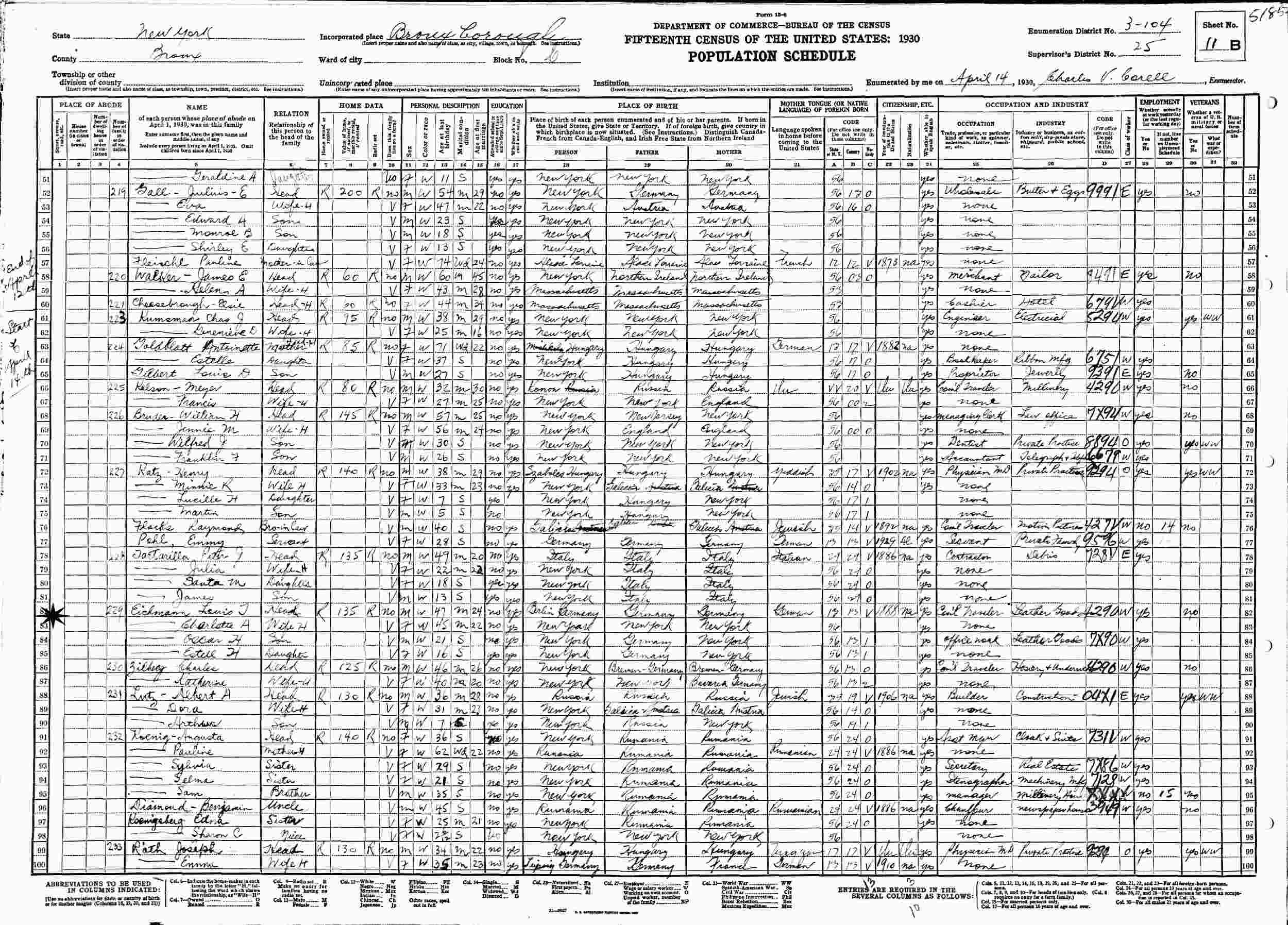 April 14, 1930 - 901 Walton Avenue, Supervisor's District 25, Enumeration District 3-104, Bronx, New York.