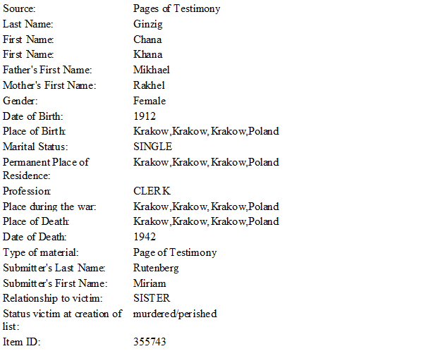 Died: 1942 in WWII (Shoah) - Krakow, Poland.