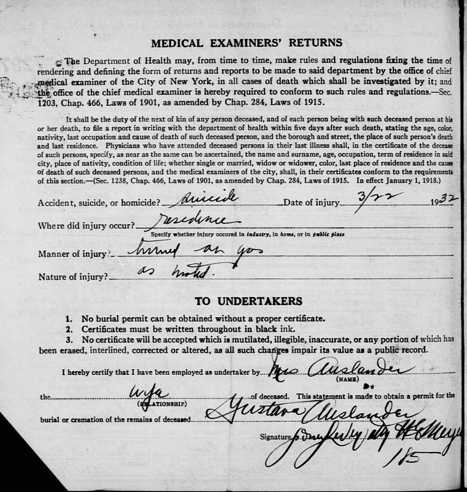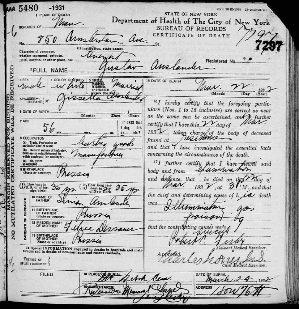 Died: March 22, 1932 in Manhattan, New York (Certificate #7297).