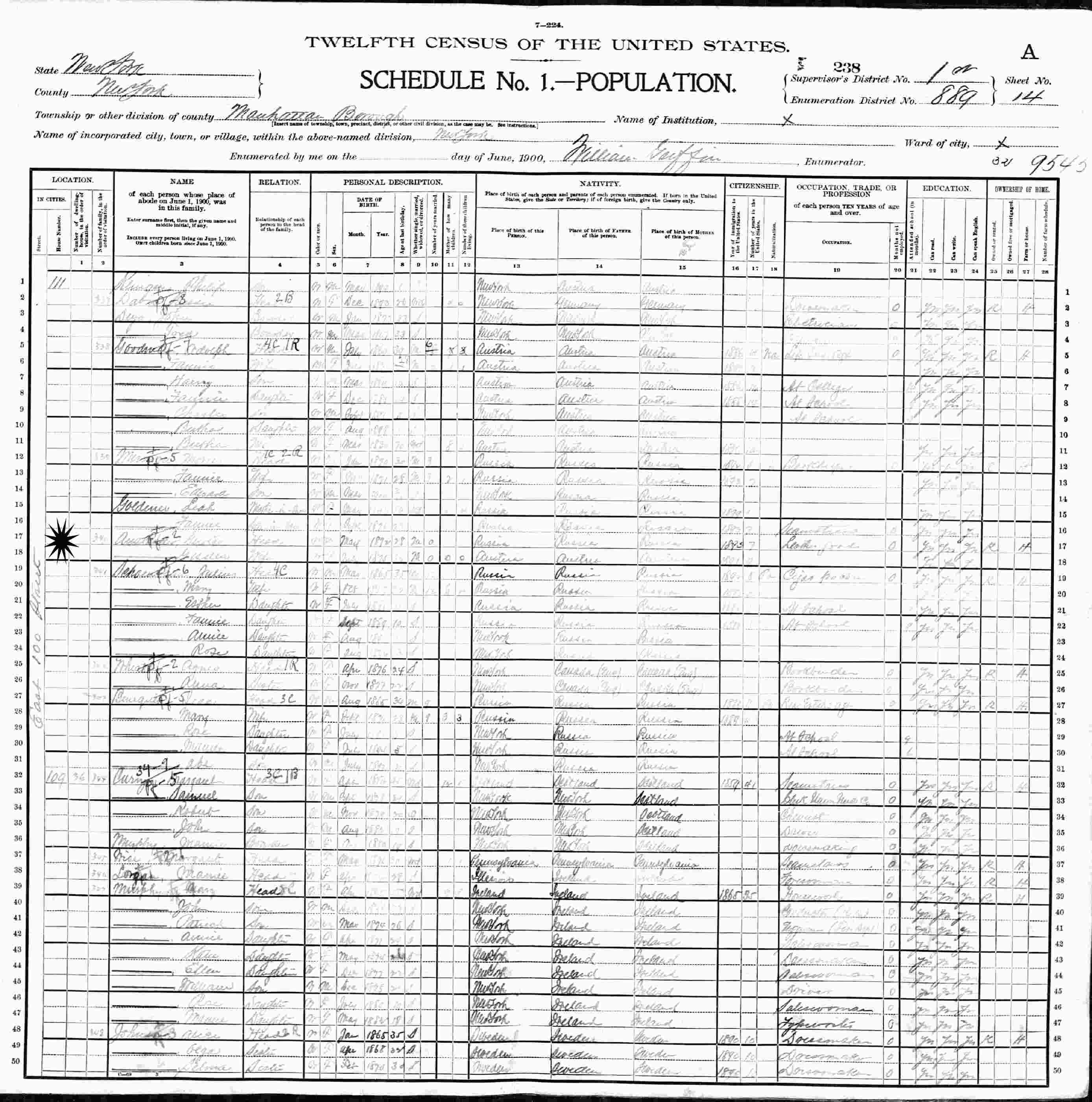 June, 1900 - 111 West 100 Street, Manhattan, Supervisor's District 1, Enumeration District 889, New York, New York.