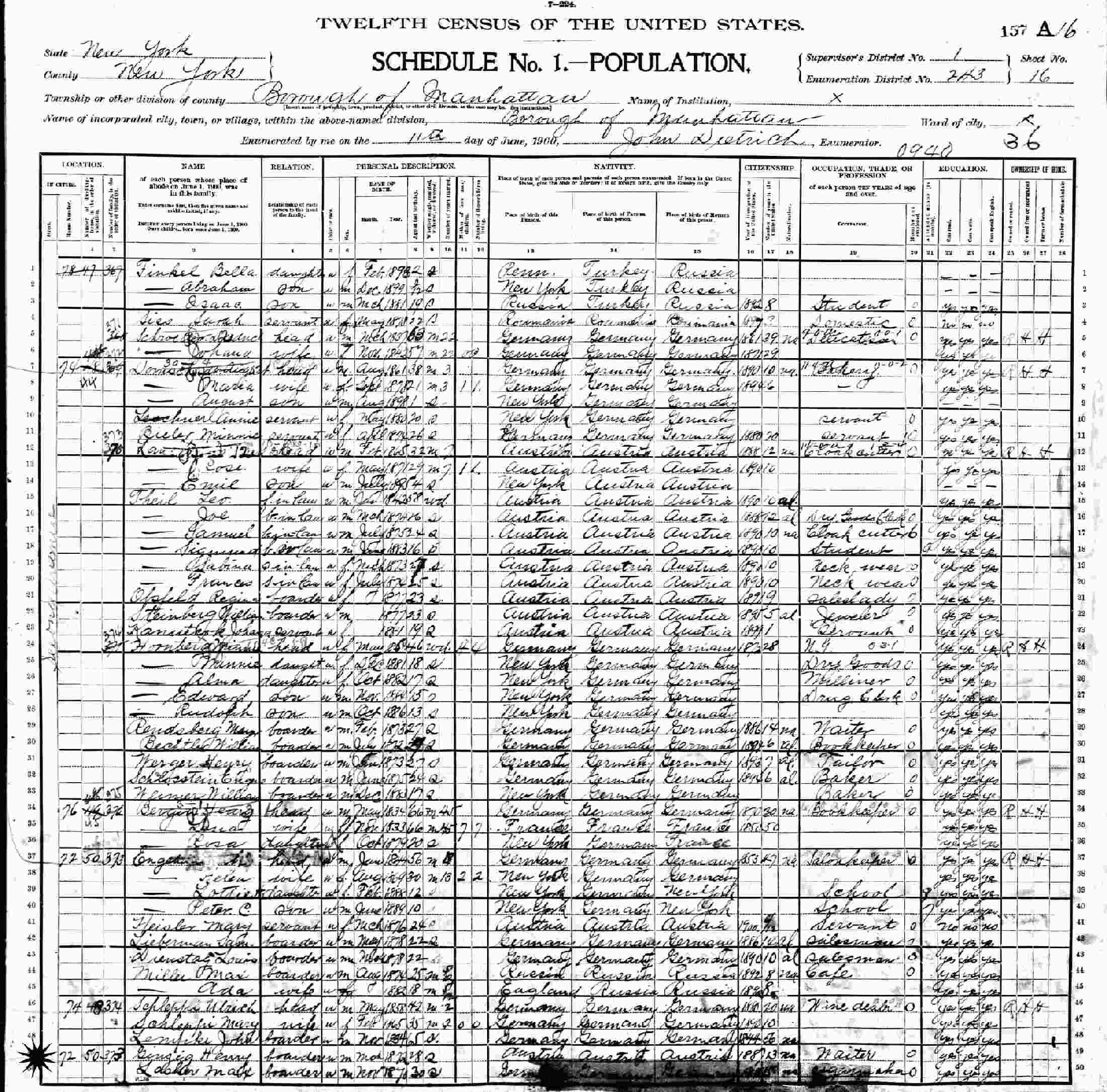 June 11, 1900 - 72 Second Avenue, Manhattan, New York, New York (boarder).