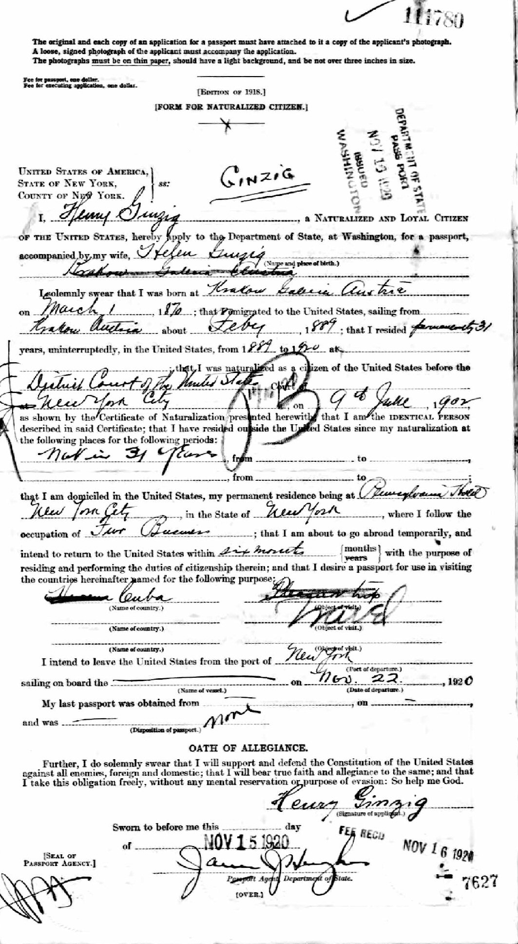AKA: Henry Guizig, Henry Ginsig, Henry Gonzig, Henry Guinzig, Henry Guntzig, Henry Guizia, and Henry Ganzig.