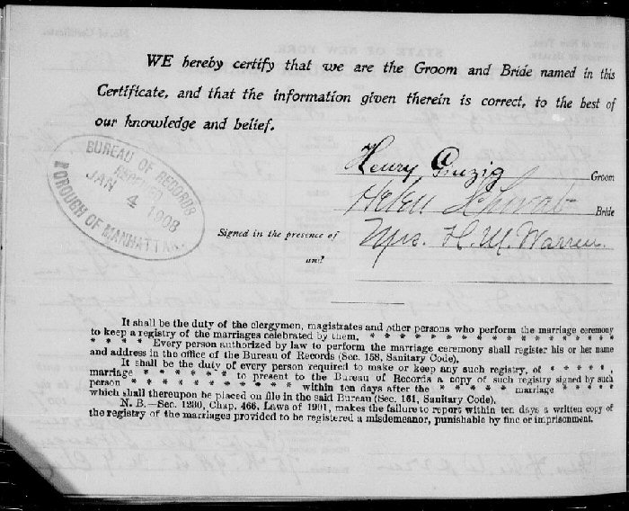 Married: Helen (nee Thorneburg/Thorne) Schwab December 17, 1907 in Manhattan, New York.