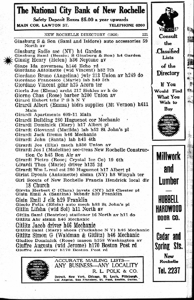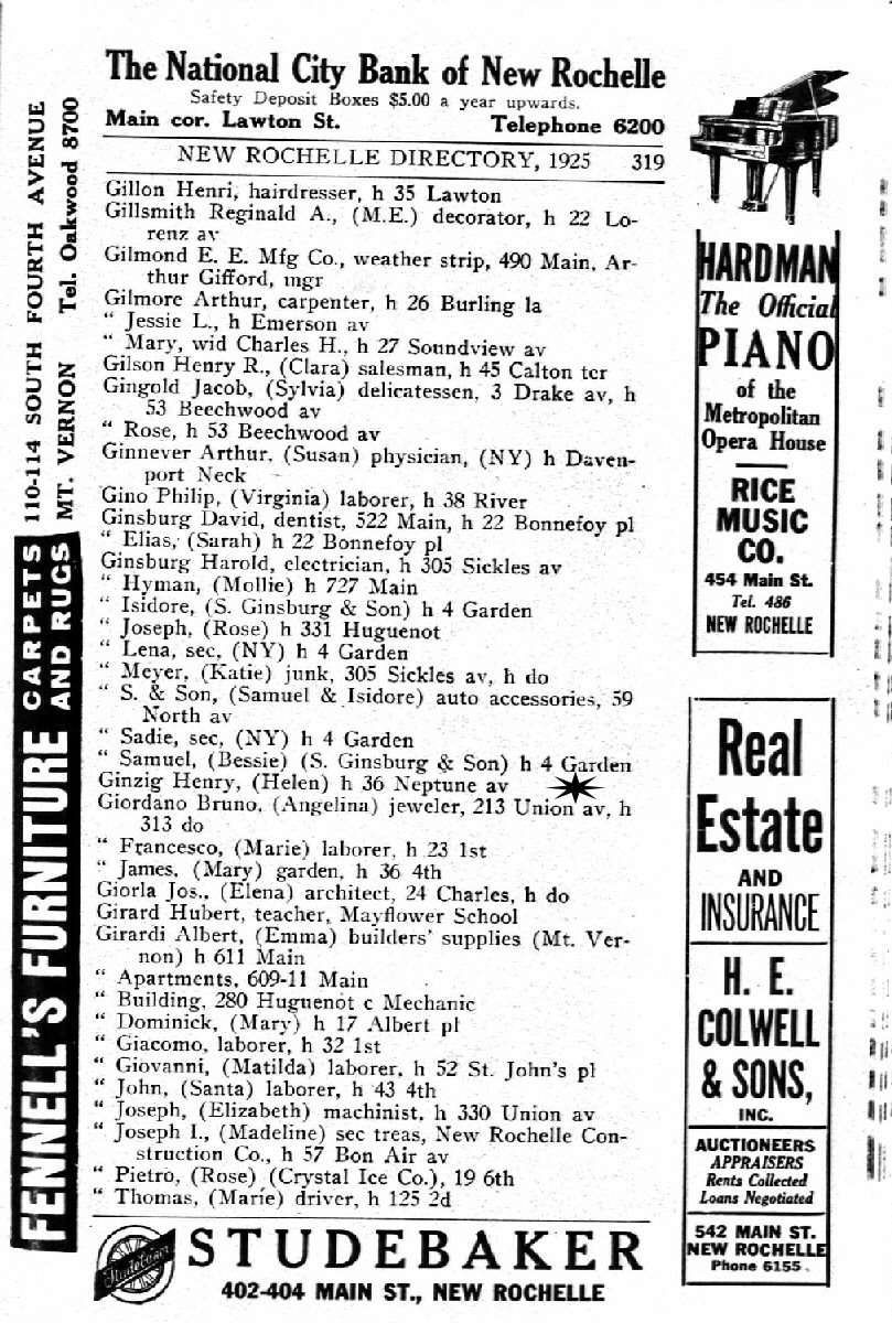 1925-1926 - 36 Neptune Avenue, New Rochelle, Westchester County, New York.