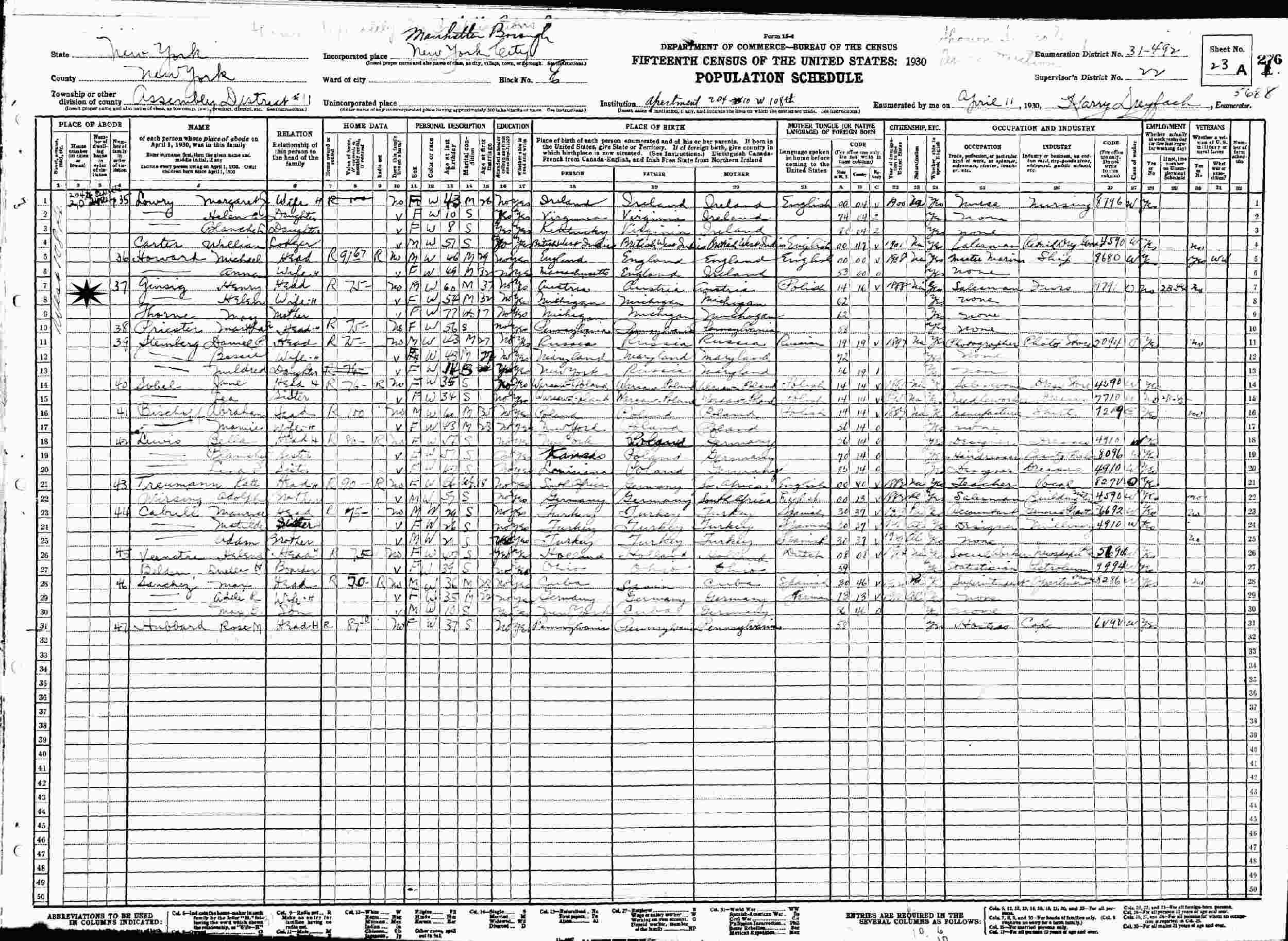 April 11, 1930 - Apartment 204, 10 W 108th Street, Enumeration District 31-492, Supervisor's District 22, Block 3, Manhattan, New York, New York.