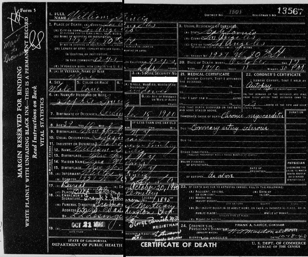 Died: October 17, 1940 in Los Angeles, Los Angeles County, California.
