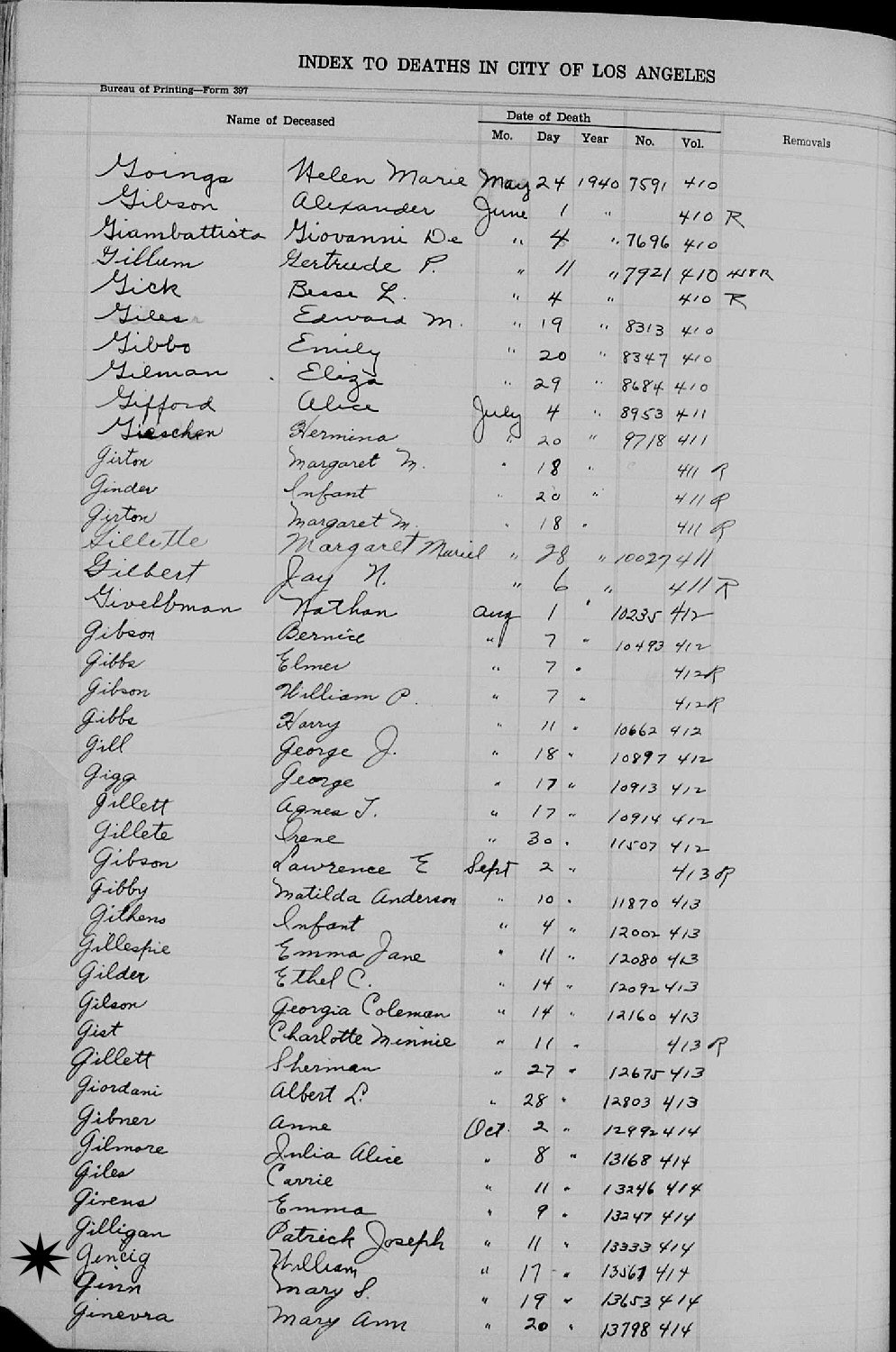 California Death Record Index