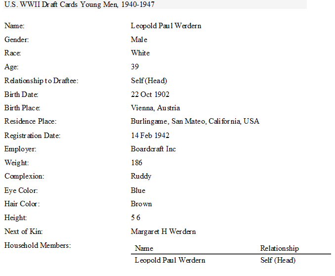 Notes for LEOPOLD PAUL WERDEN: