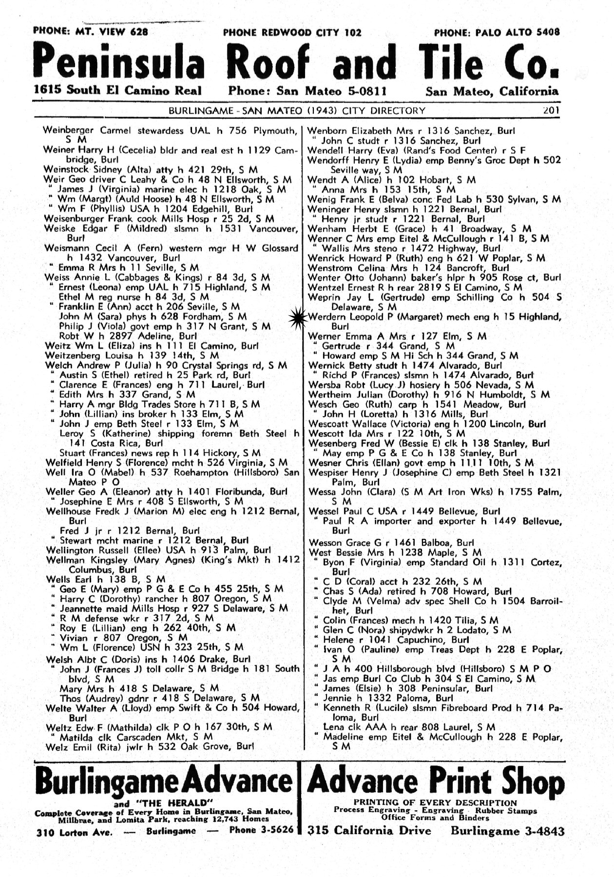 1955 - 75 Almendral Avenue, Redwood City, California (Ath).