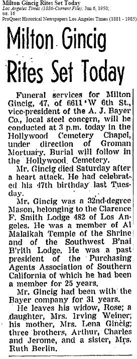 Died: June 3, 1950 in Los Angeles, Los Angeles County, California.