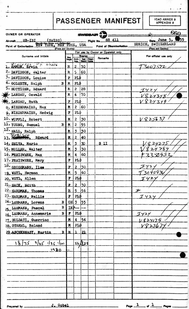 June 5, 1955 - New York to Zurich, Switzerland - SwissAir (w/Ruth)