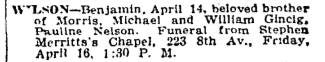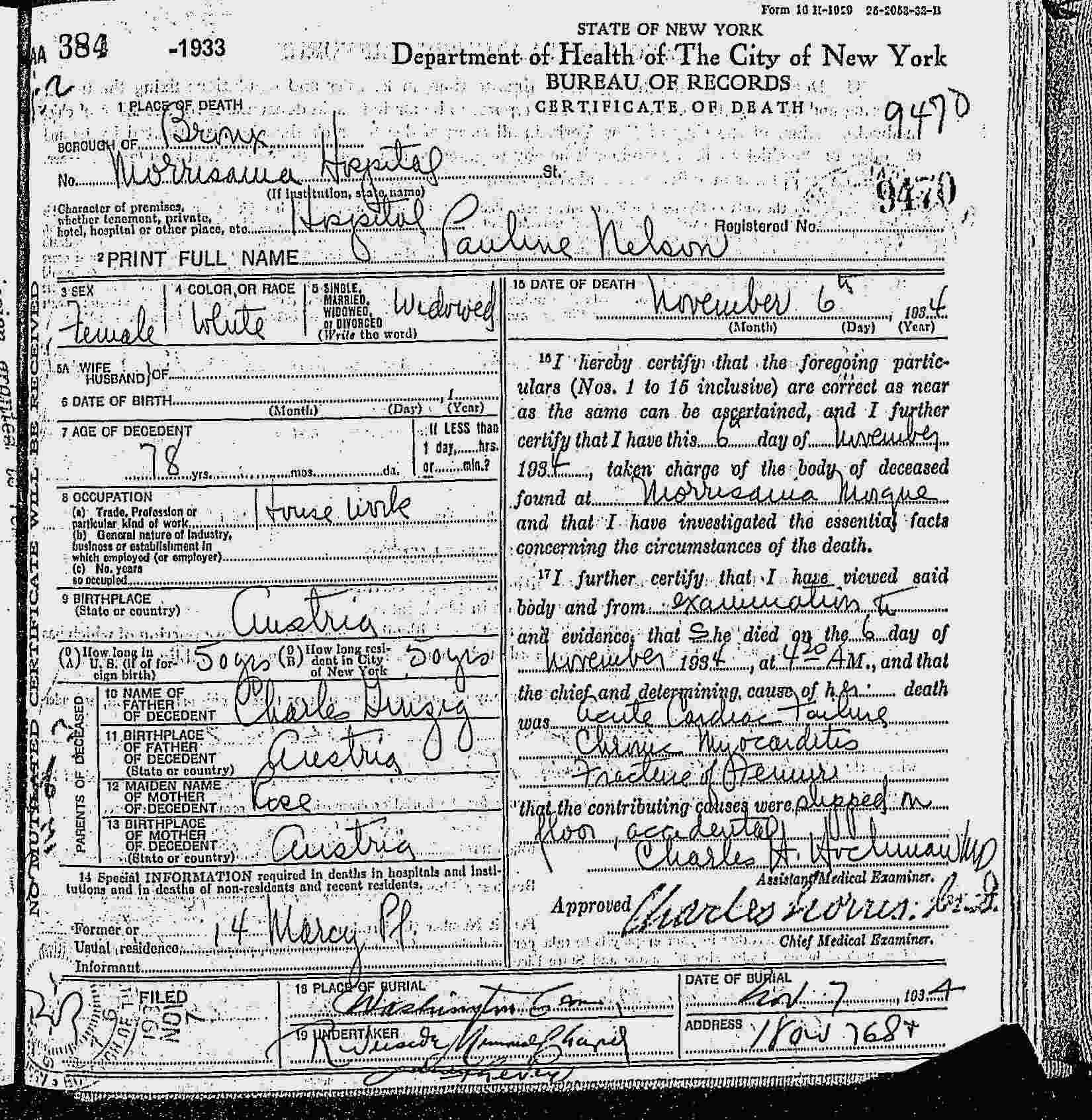 Buried: November 7, 1934 in Washington Cemetery, Brooklyn, Kings County, New York.