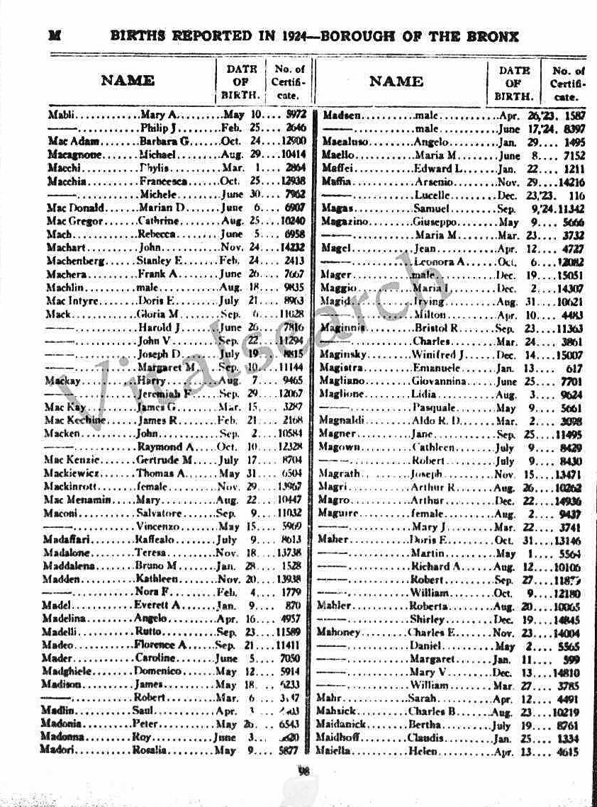 June 1, 1925 - New York State - 1073 Fox, Assembly District 5, Block 2, Election District 28, Bronx, New York.