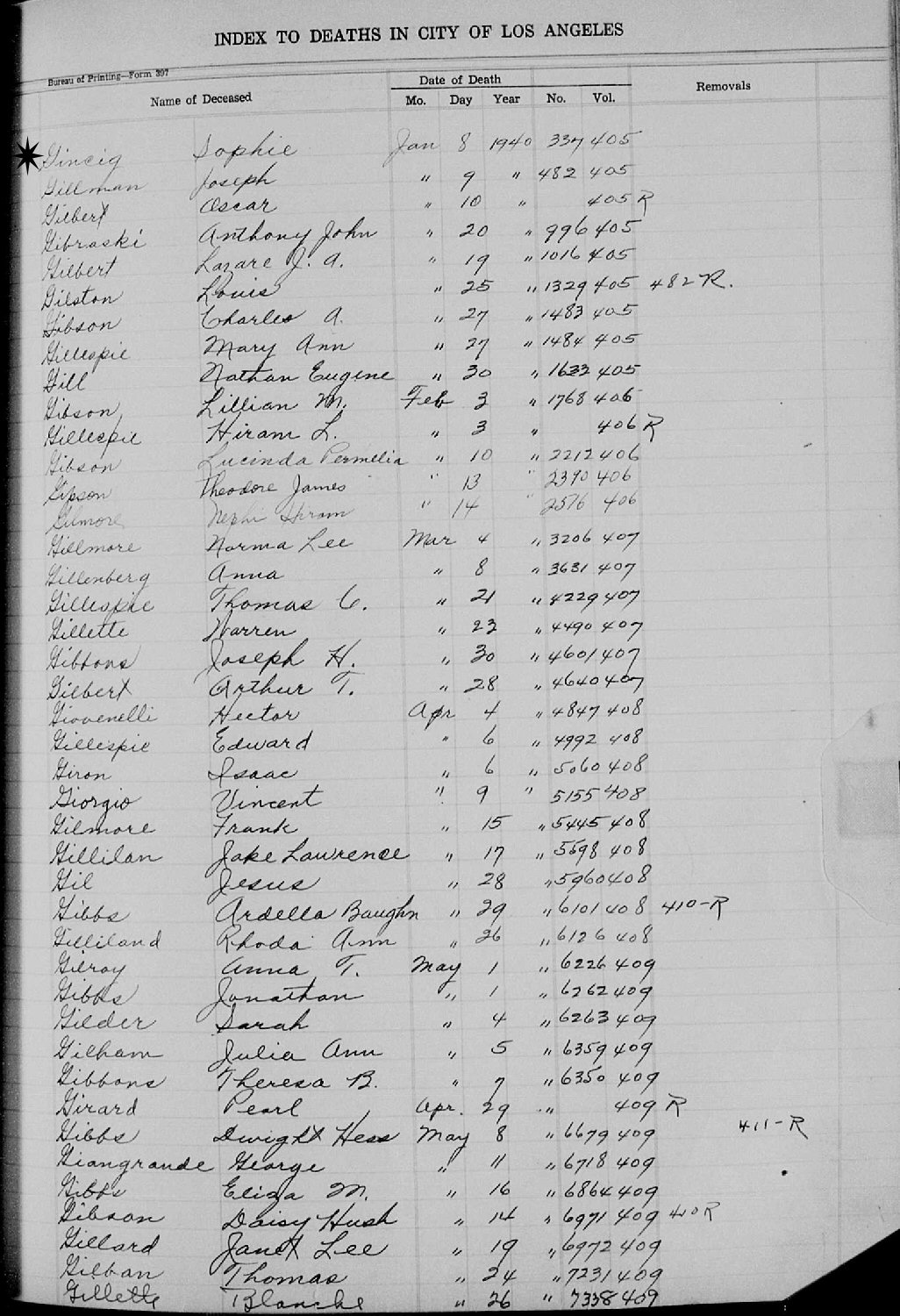 Died: January 8, 1940 in Los Angeles, Los Angeles County, California.