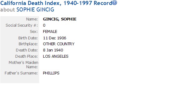 Married: Ira William Gincig July 29, 1923 in Los Angeles, Los Angeles County, California. (Divorce: filed Abt Dec 21, 1929 but looks like never divorced)