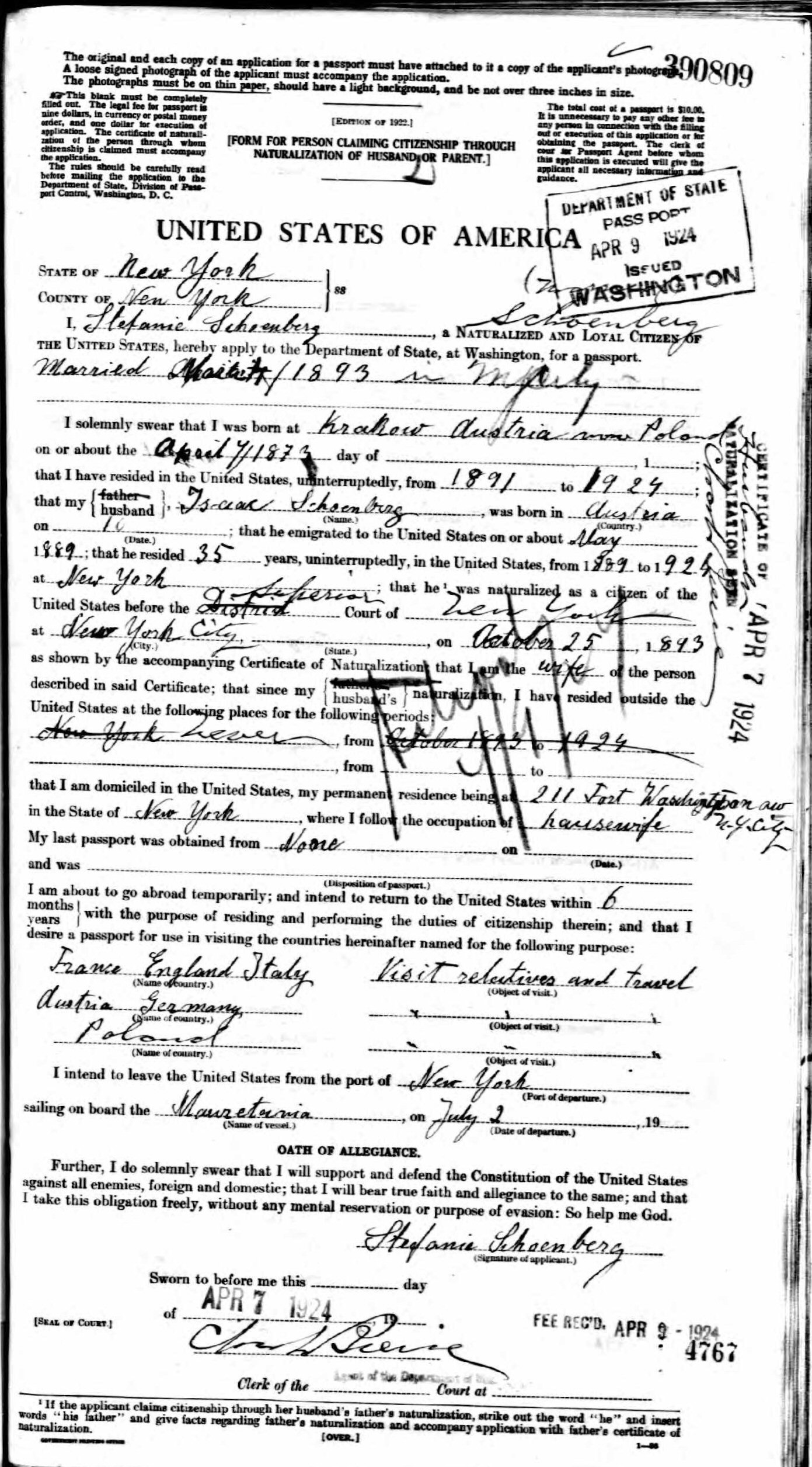 Port of Arrival: New York, New York
