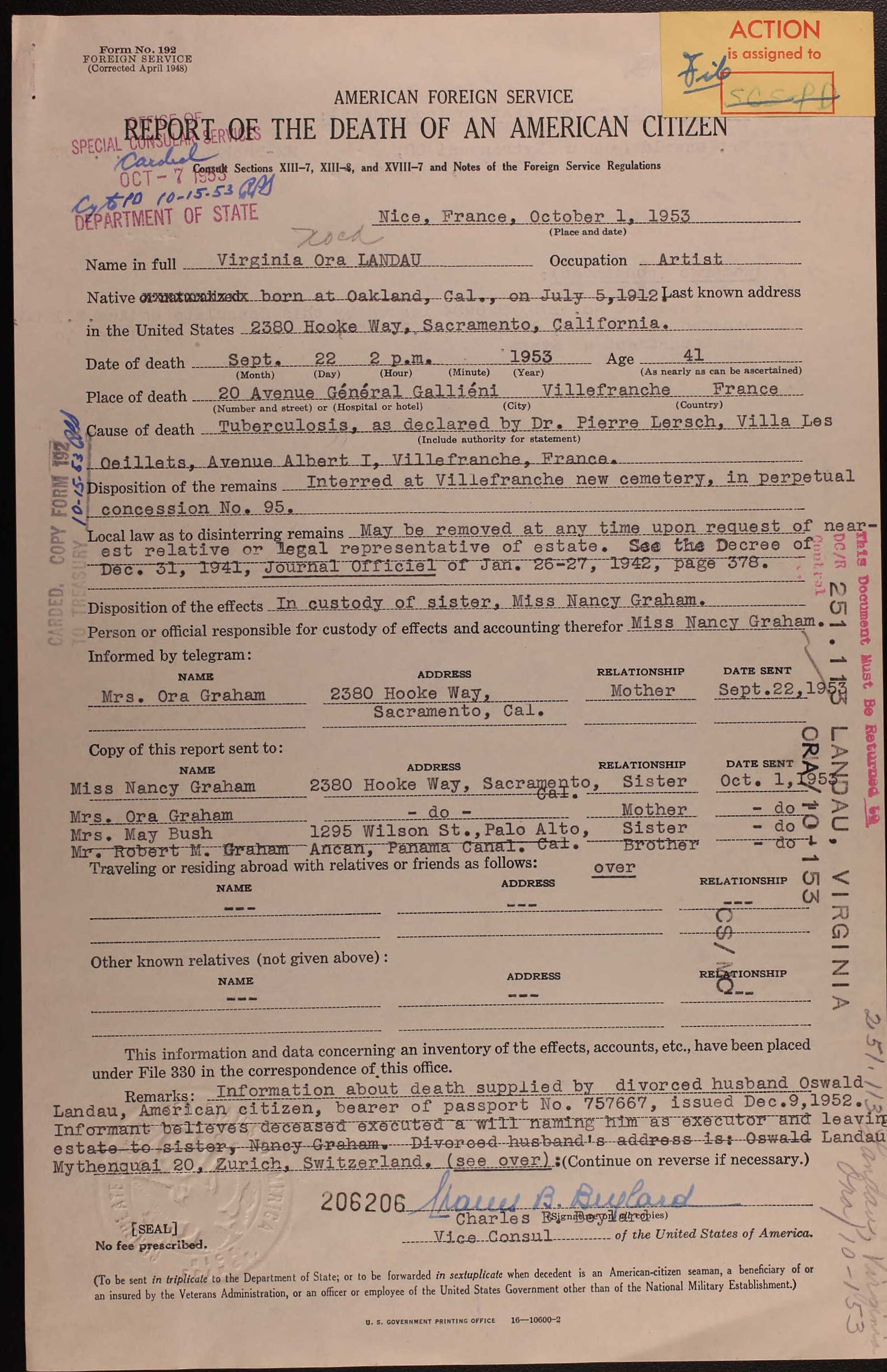Notes for VIRGNIA ORA GRAHAM LANDAU: