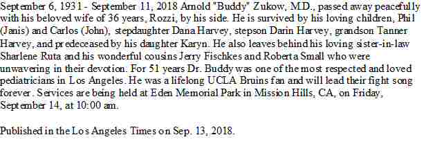 Notes for ARNOLD HARRY "BUDDY" ZUKOW: