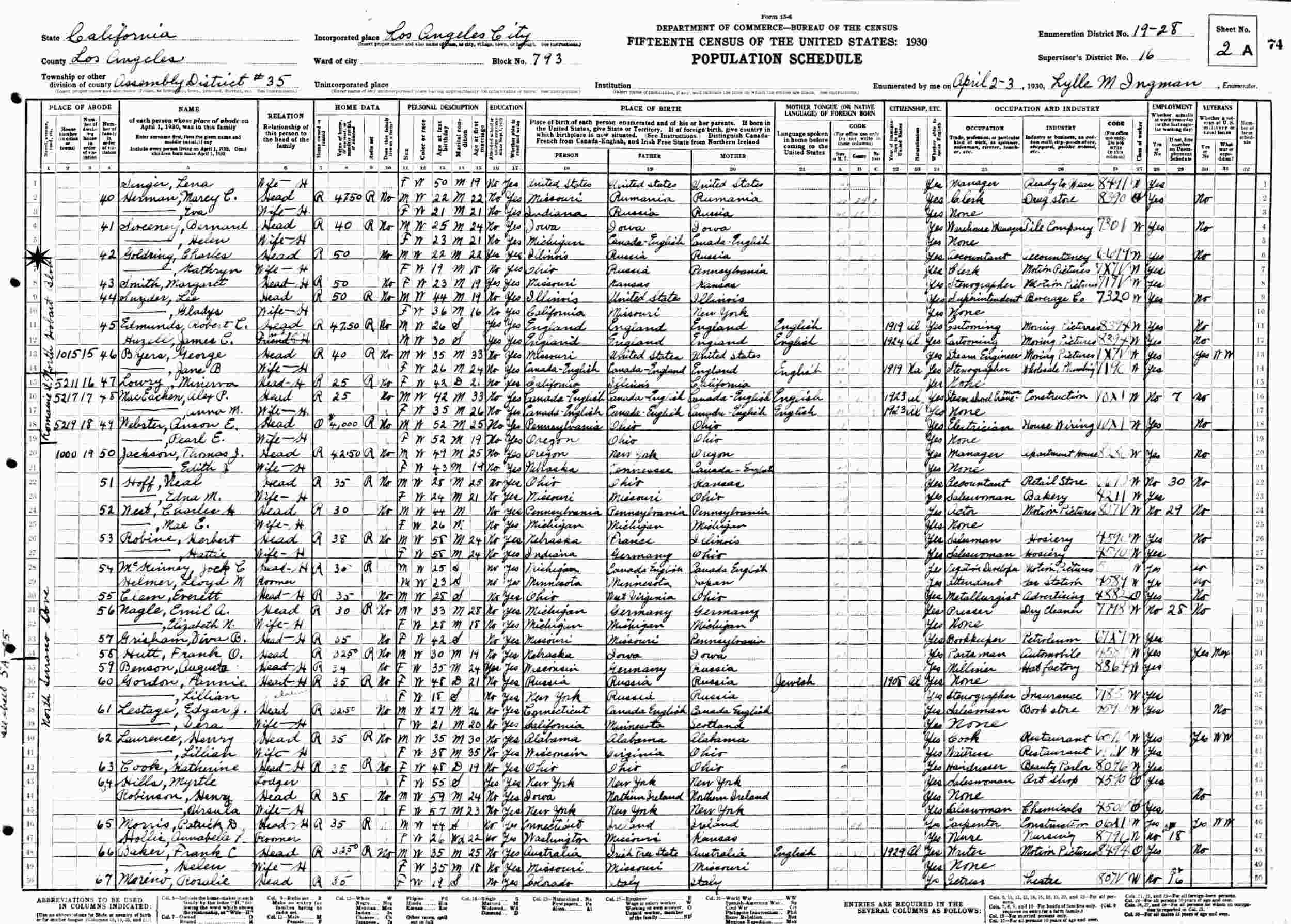 April 2-3, 1930 - 1001 N. Hobard Blvd, Block 793, Assembly District 35, Supervisor's District 16, Enumeration District 19-28, Los Angeles, Los Angeles County, California.