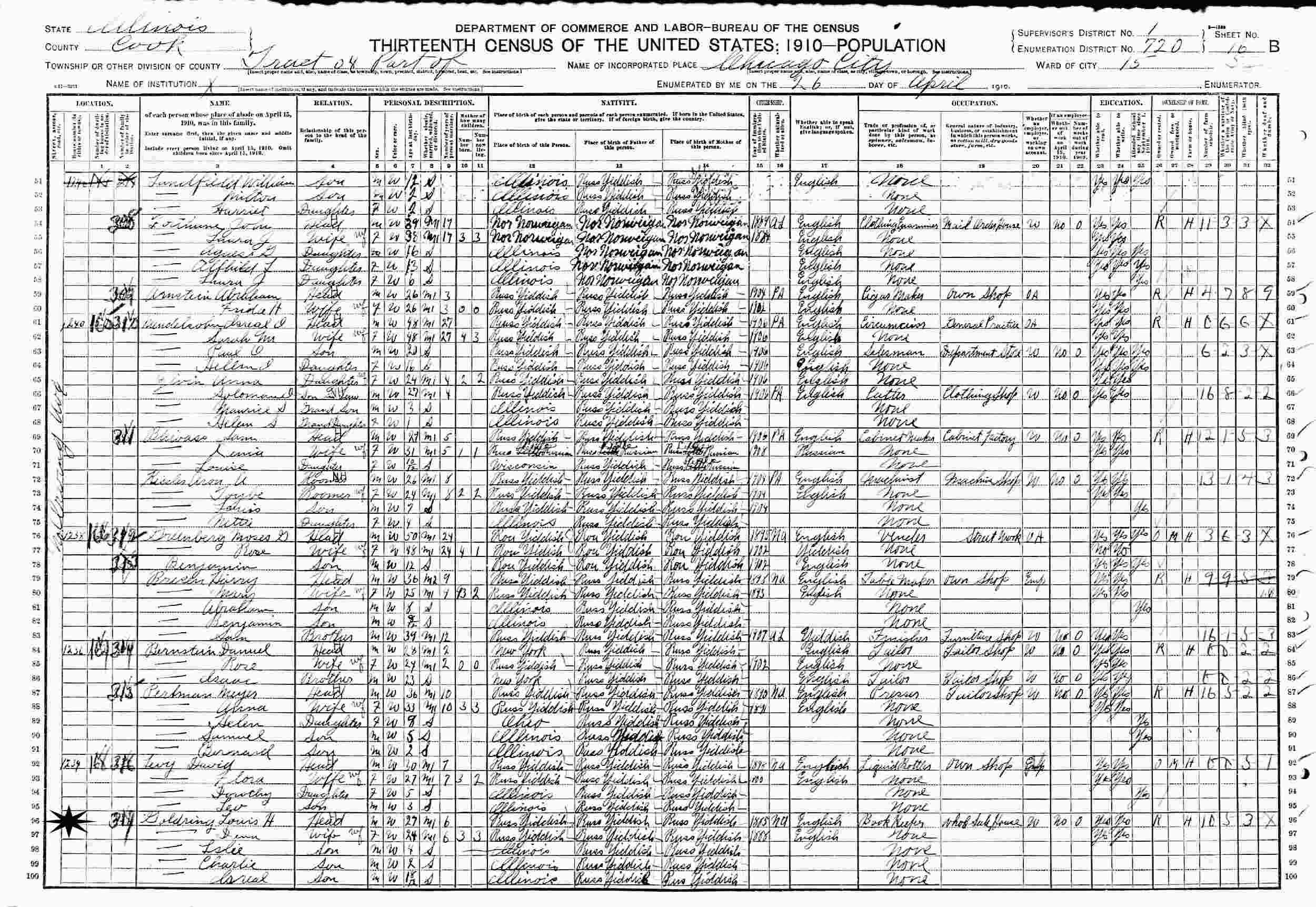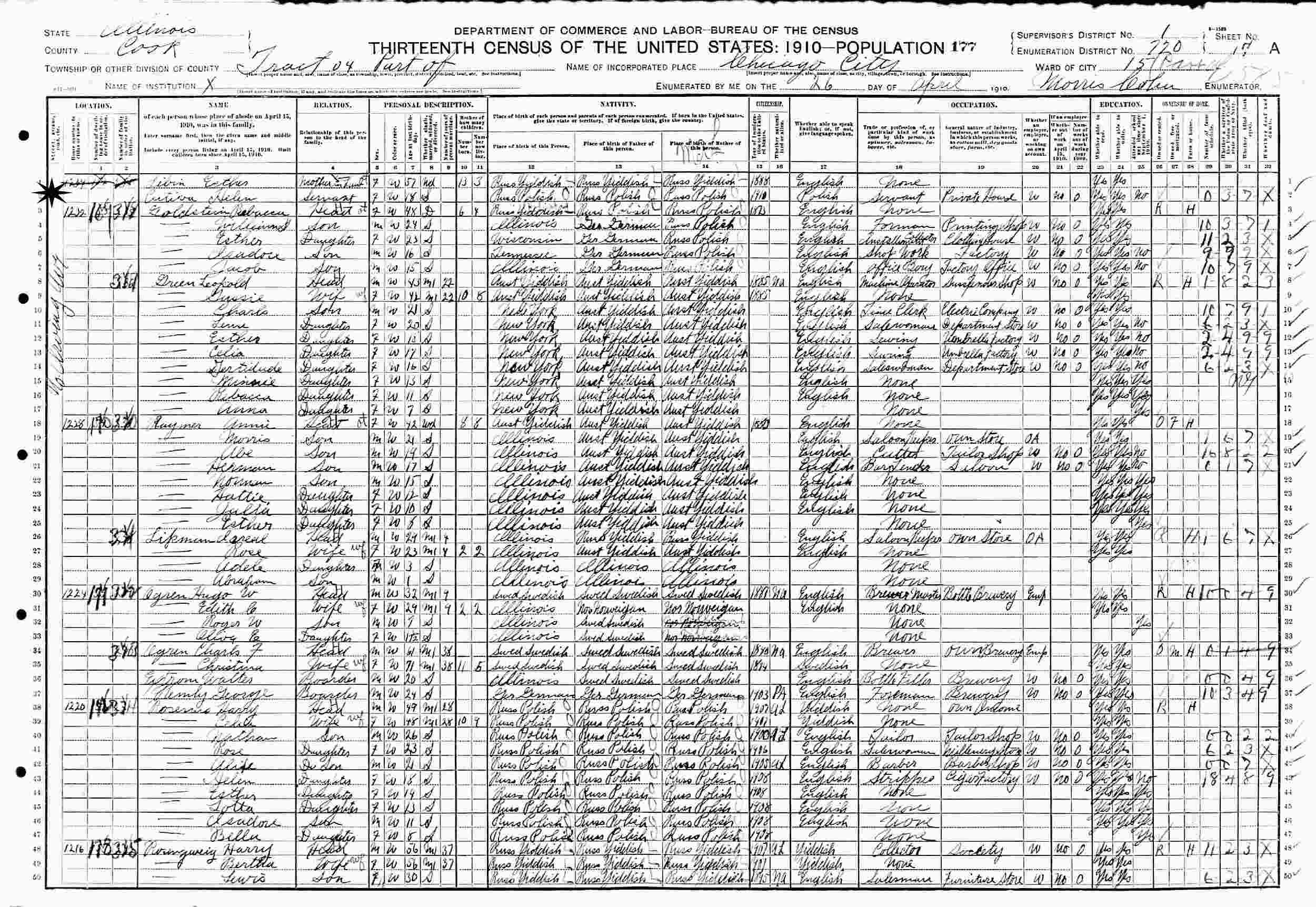 April 26, 1910 - 1234 N. Irving Avenue, Tract O4, Ward 15, Supervisor's District 1, Enumeration District 720, Chicago, Cook County, Illinois.