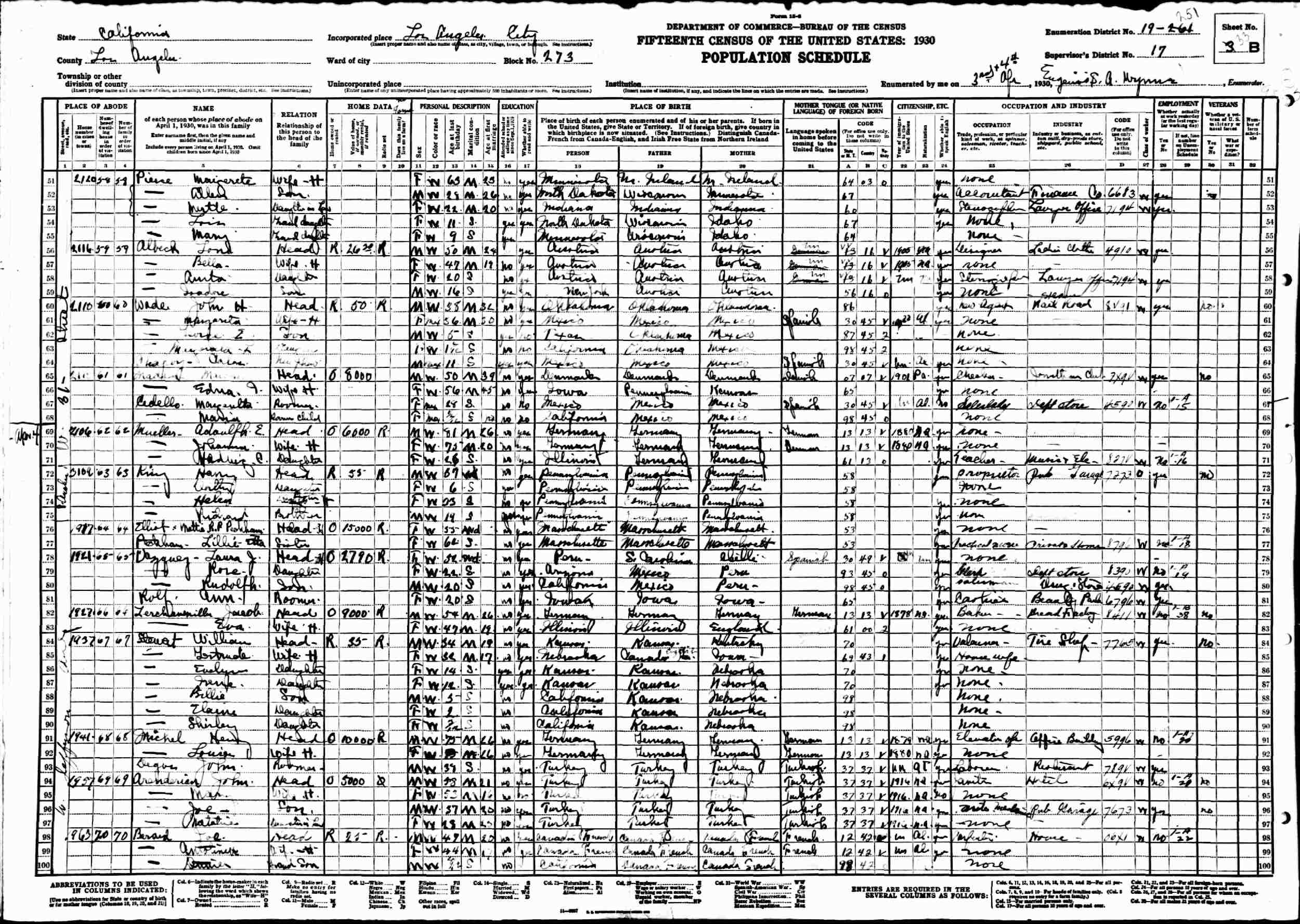 April 3-4, 1930 - 2116 W 31st Street, Block 273, Supervisor's District 17, Enumeration District 19-251, Los Angeles, Los Angeles County, California.