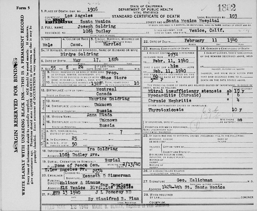 Died: February 11, 1940 in Los Angeles, Los Angeles County, California.