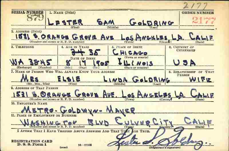 Notes for LESTER "LESLIE" SAM GOLDRING:
