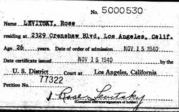 Petition For Naturalization: July 1, 1937, Los Angeles, Los Angeles County, California.