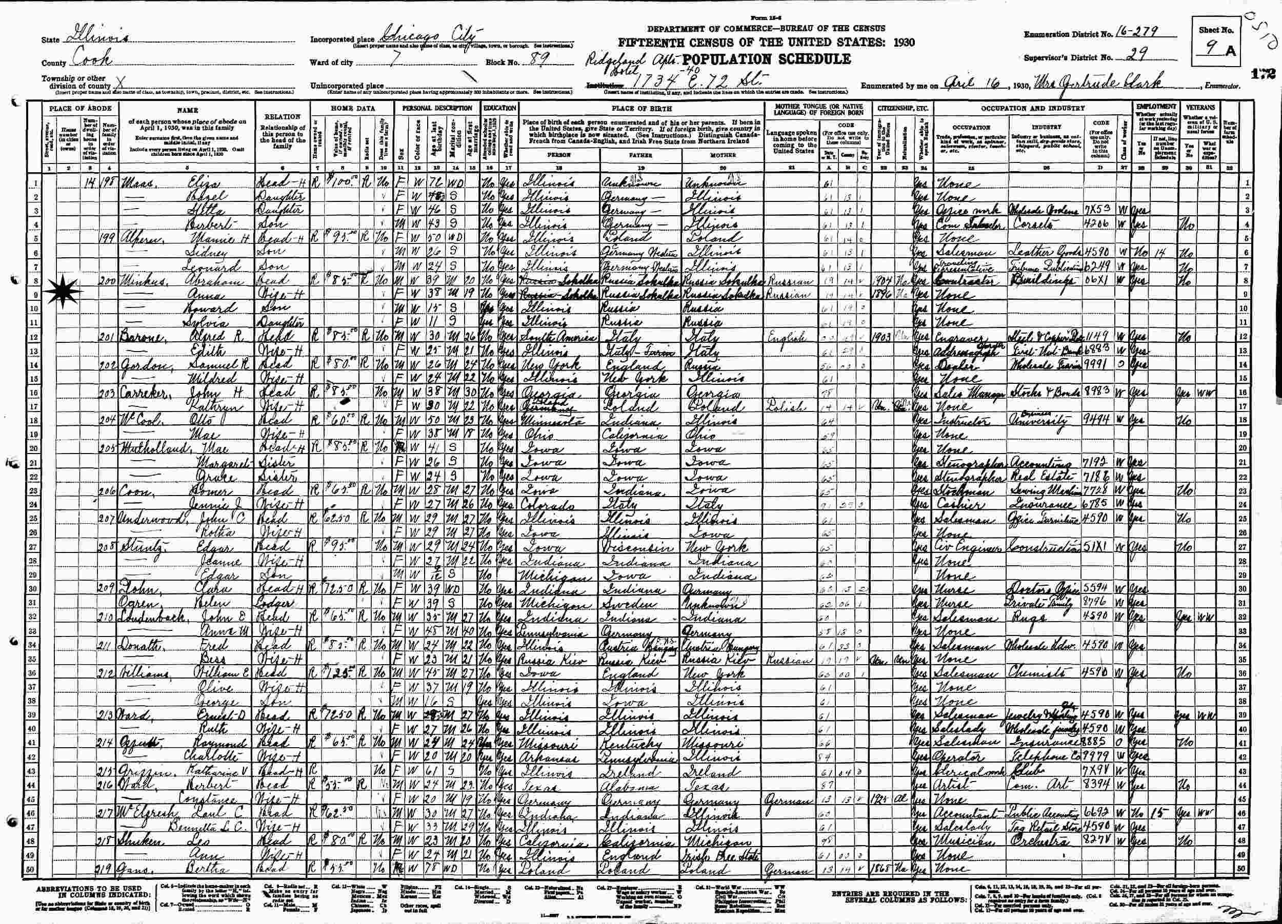April 16, 1930 - 2150 Alice Place, Ward 28, Supervisor's District 1, Enumeration District 1741, Chicago, Cook County, Illinois.