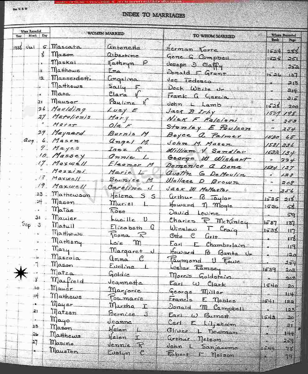 Married: Morrie Goldstein September 7, 1938 at Los Angeles, Los Angeles County, California.