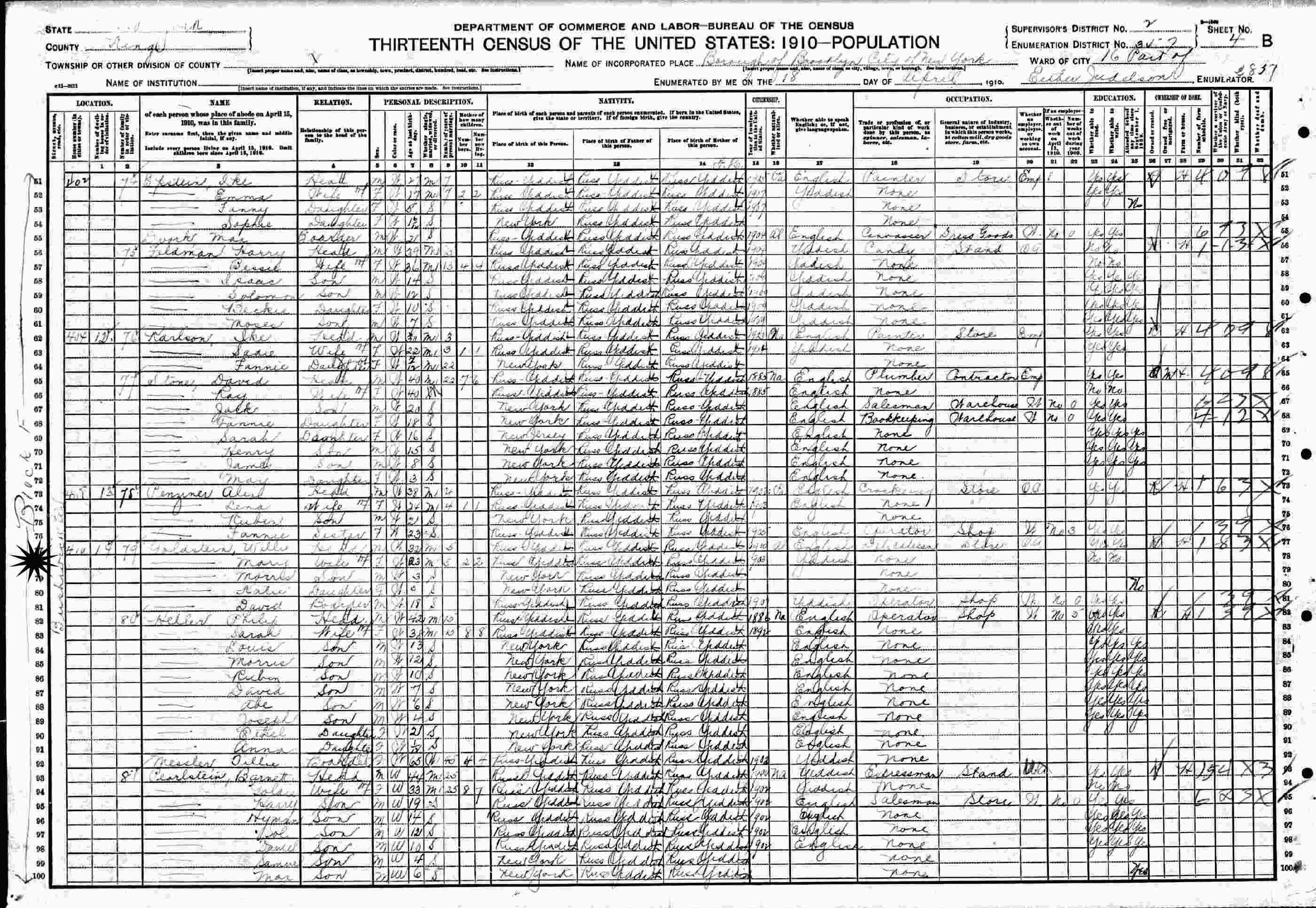 April 18, 1910: 410 Bushwick Avenue, Brooklyn, Block F, Part of Ward 16, Supervisor's District 2, Enumeration District 357, Kings County, New York.
