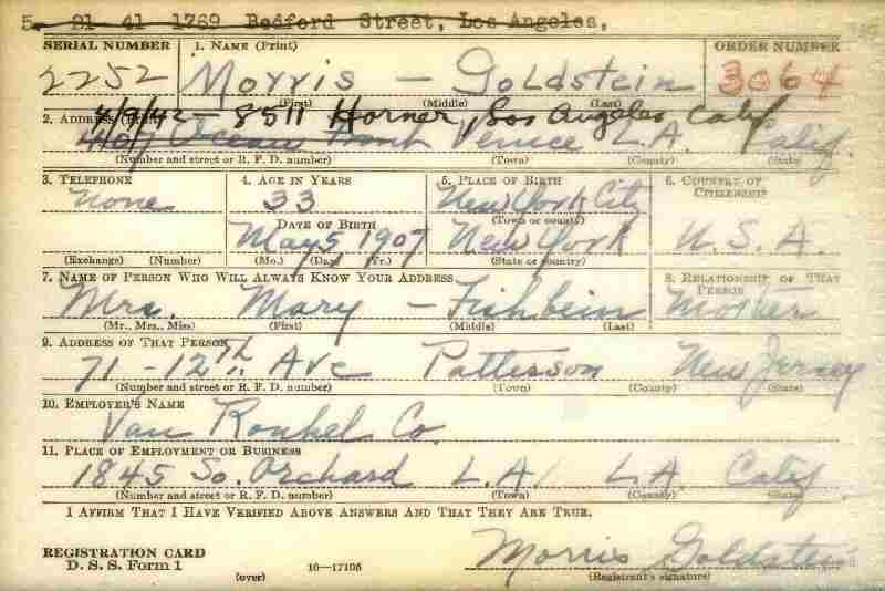 Married: (1) Goldie Matza 1938 at Los Angeles, Los Angeles County, California.