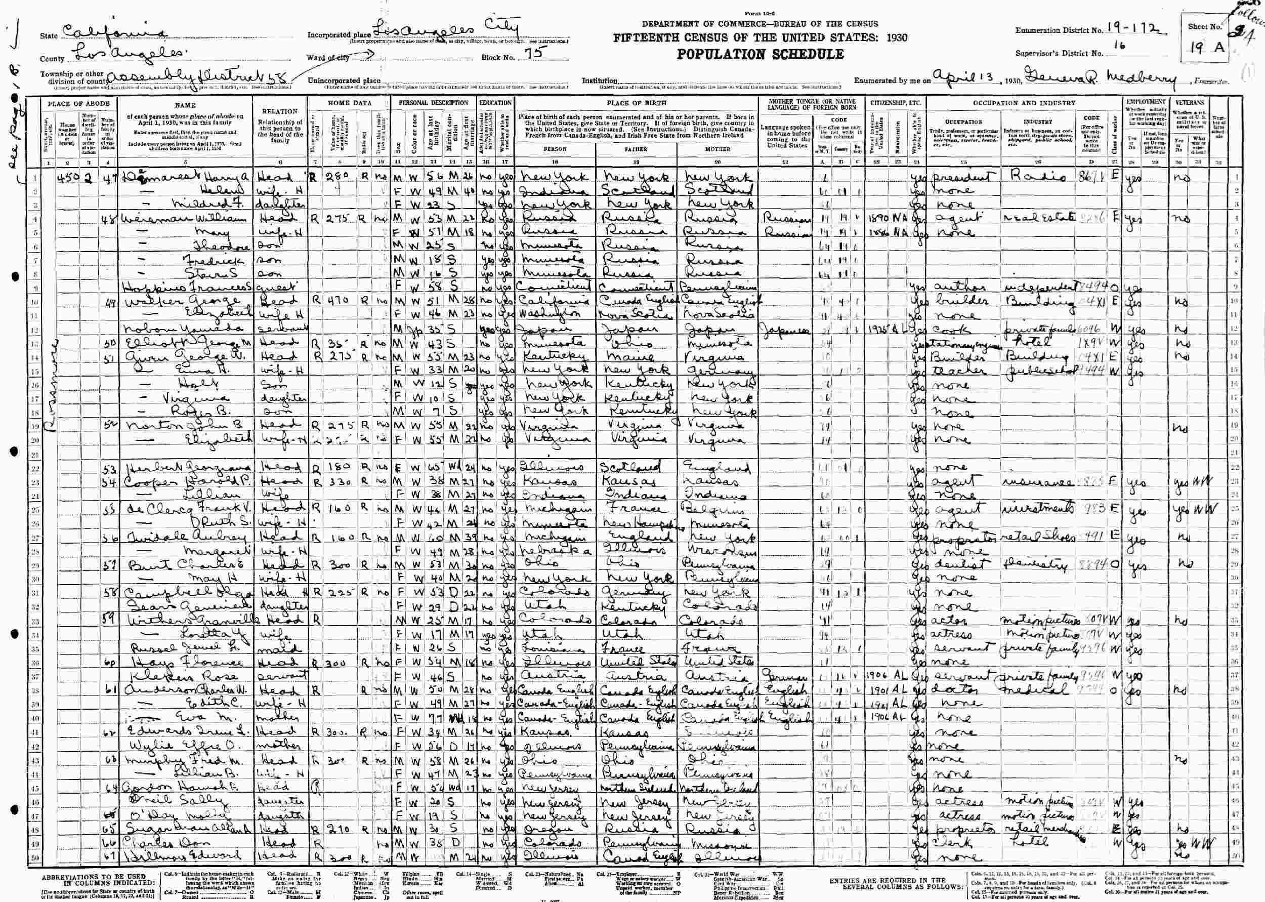 April 13, 1930 - 450 Rosemore, Assembly District 58, Block 75, Supervisor's District 16, Enumeration District 19-172, Los Angeles, Los Angeles County, California.