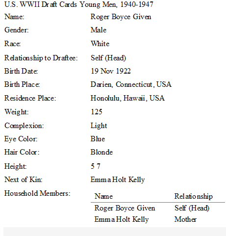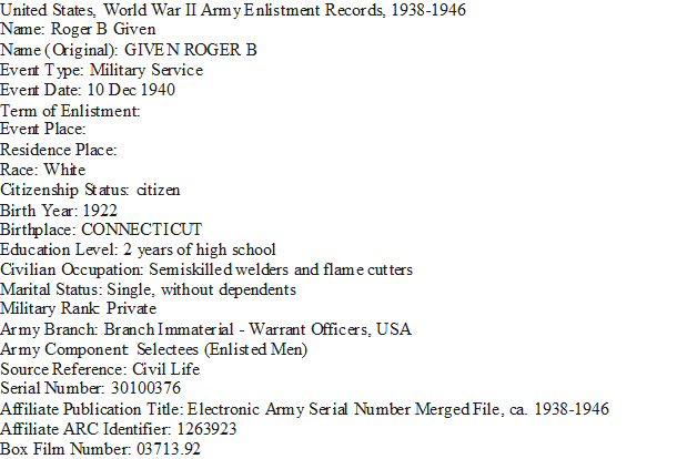 December 10, 1940 - October 01, 1945 - WWII - U.S. Army.
