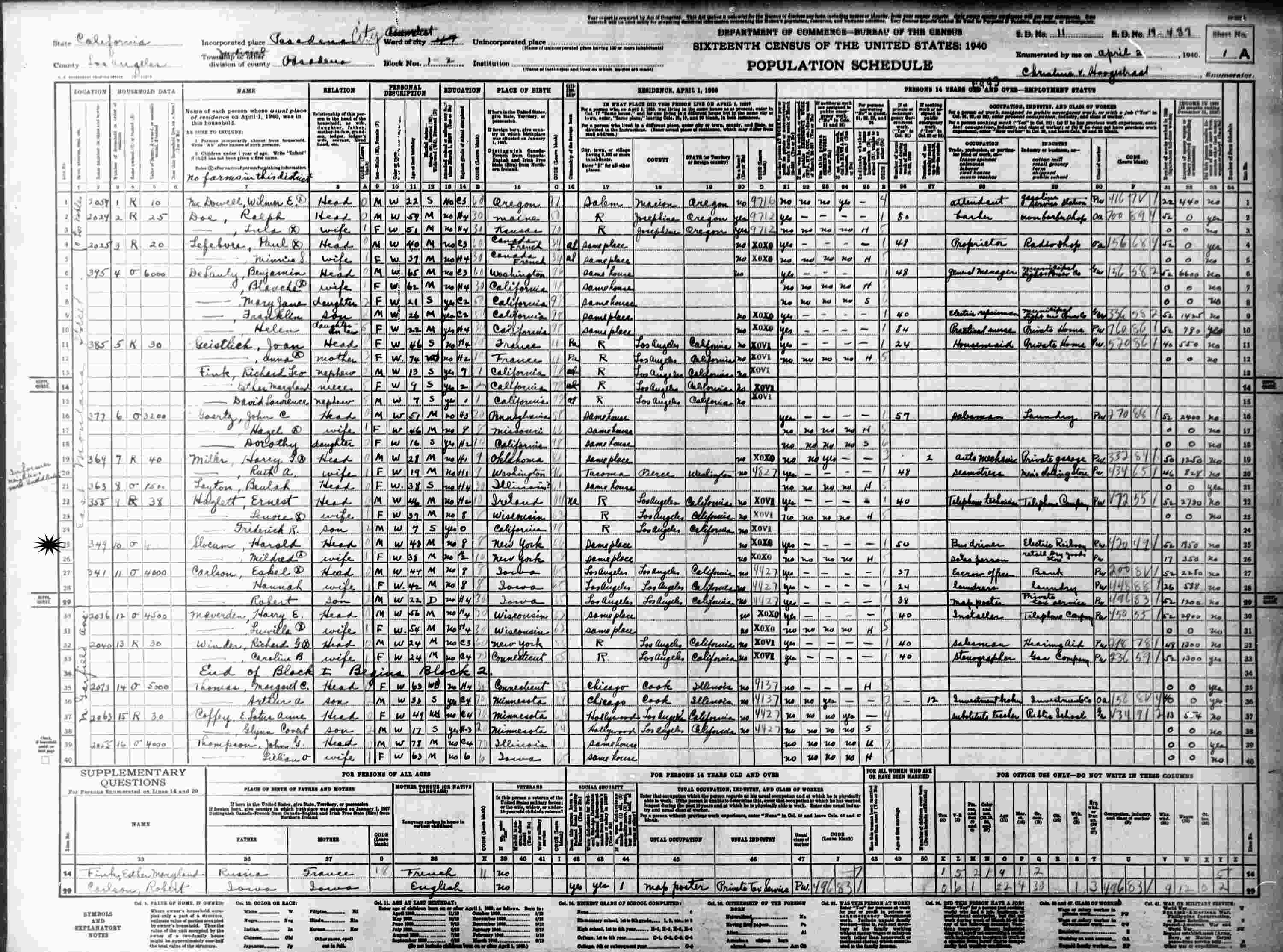 April 2, 1940 - Salesperson, Retail Dry Goods Store.