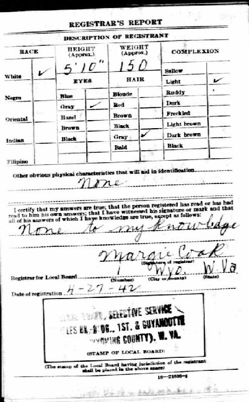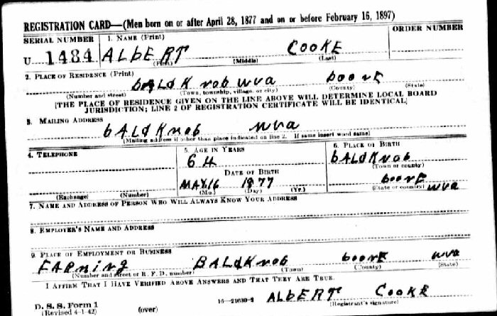 Born: May 16, 1875 in Bald Knob, Boone County, West Virginia.
