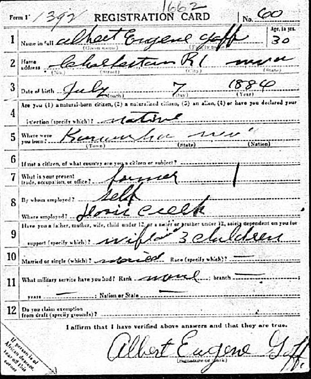 Notes for ALBERT EUGENE GOFF: