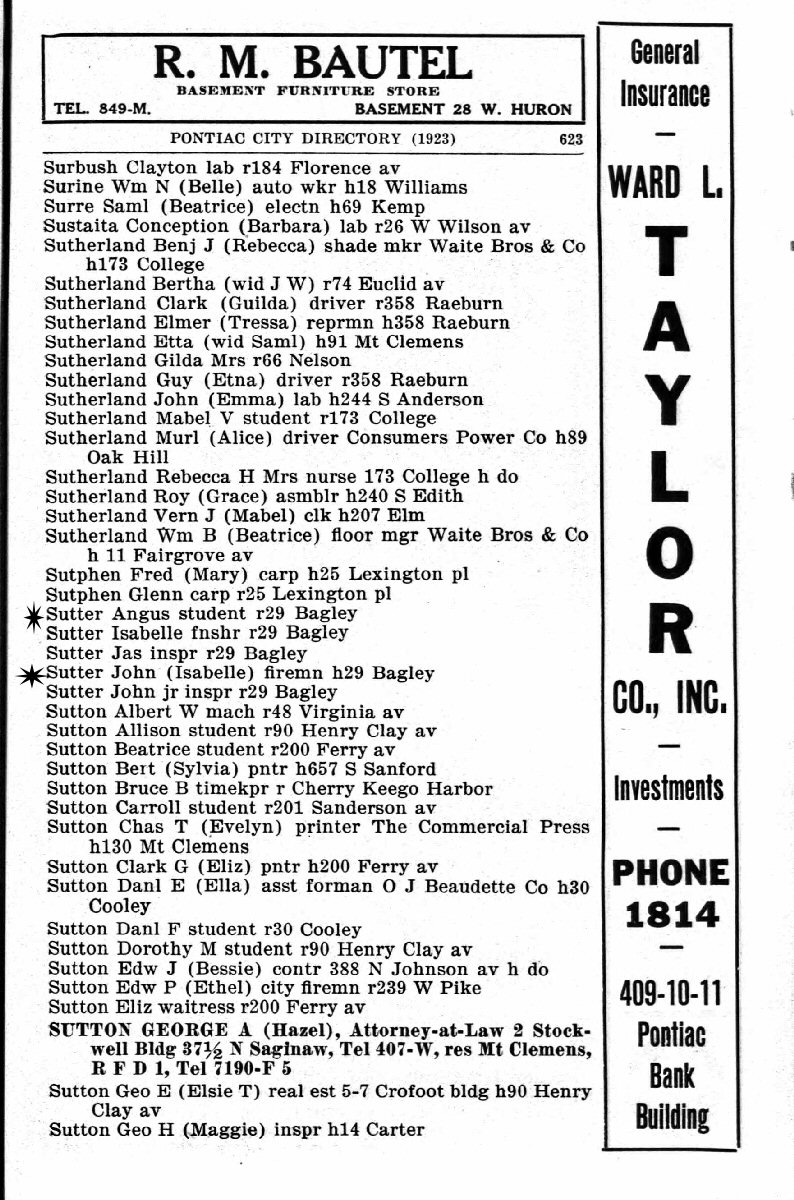 1923 - 29 Bagley, Pontiac, Oakland County, Michigan.