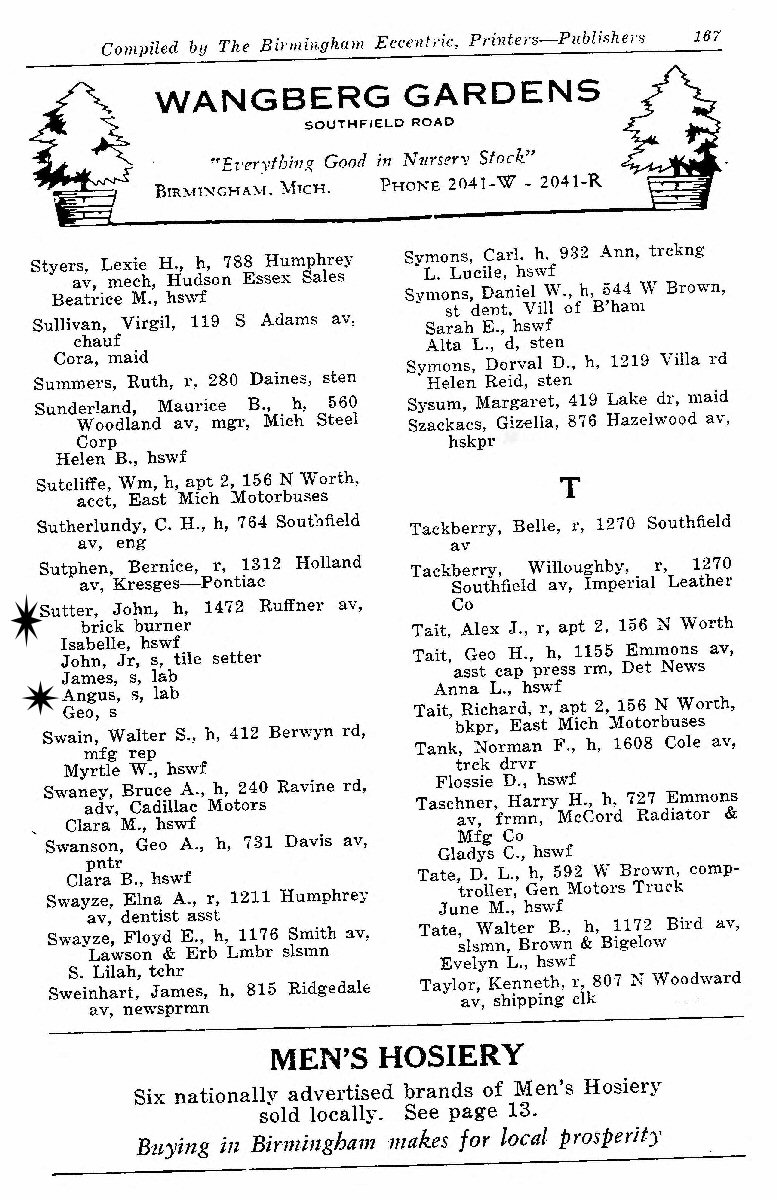 1930 - 1472 Ruffner Avenue, Birmingham, Oakland County, Michigan.