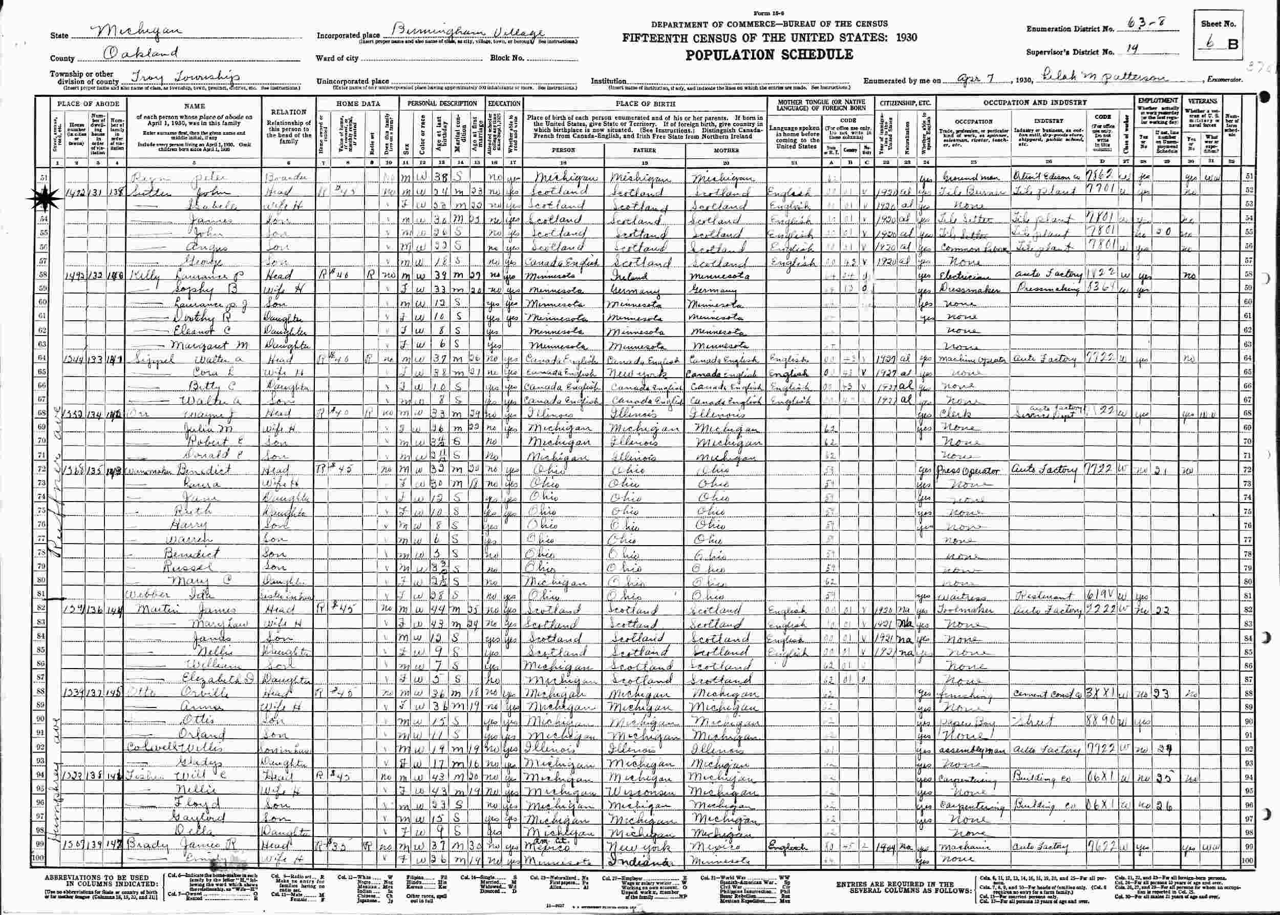 April 7, 1930 - 1472 Ruffner Troy Township, Supervisor's District 4, Enumeration District 63-8, Birmingham Village, Oakland County, Michigan.