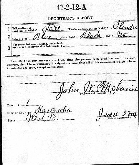Born: March 27, 1896 in Boone, Boone County, West Virginia.