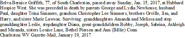 Notes for BELVA BERNICE NEWHOUSE GRIFFITH: