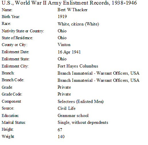 Military Service: April 16, 1941-June 9, 1945 - WWII - U.S. Army.