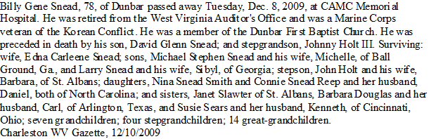 Died: December 08, 2009 at CAMC Memorial Hospital, Charleston, Kanawha County, West Virginia.
