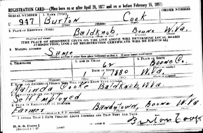 September 12, 1918 - Bald Knob, Boone County, West Virginia.
