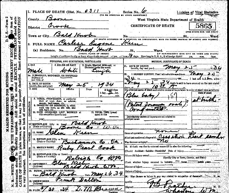Died: May 25, 1934 in Bald Knob, Raleigh County, West Virginia.