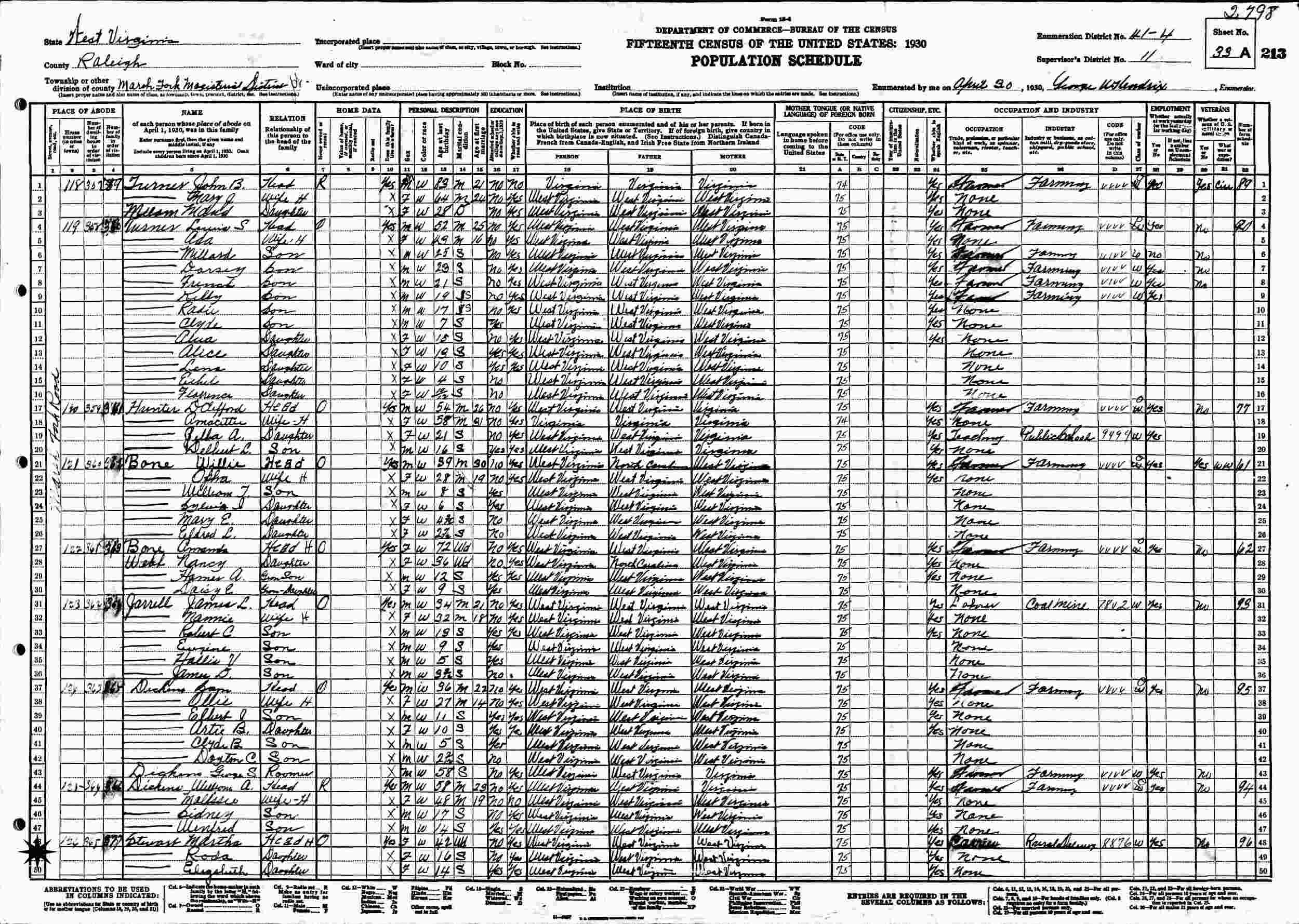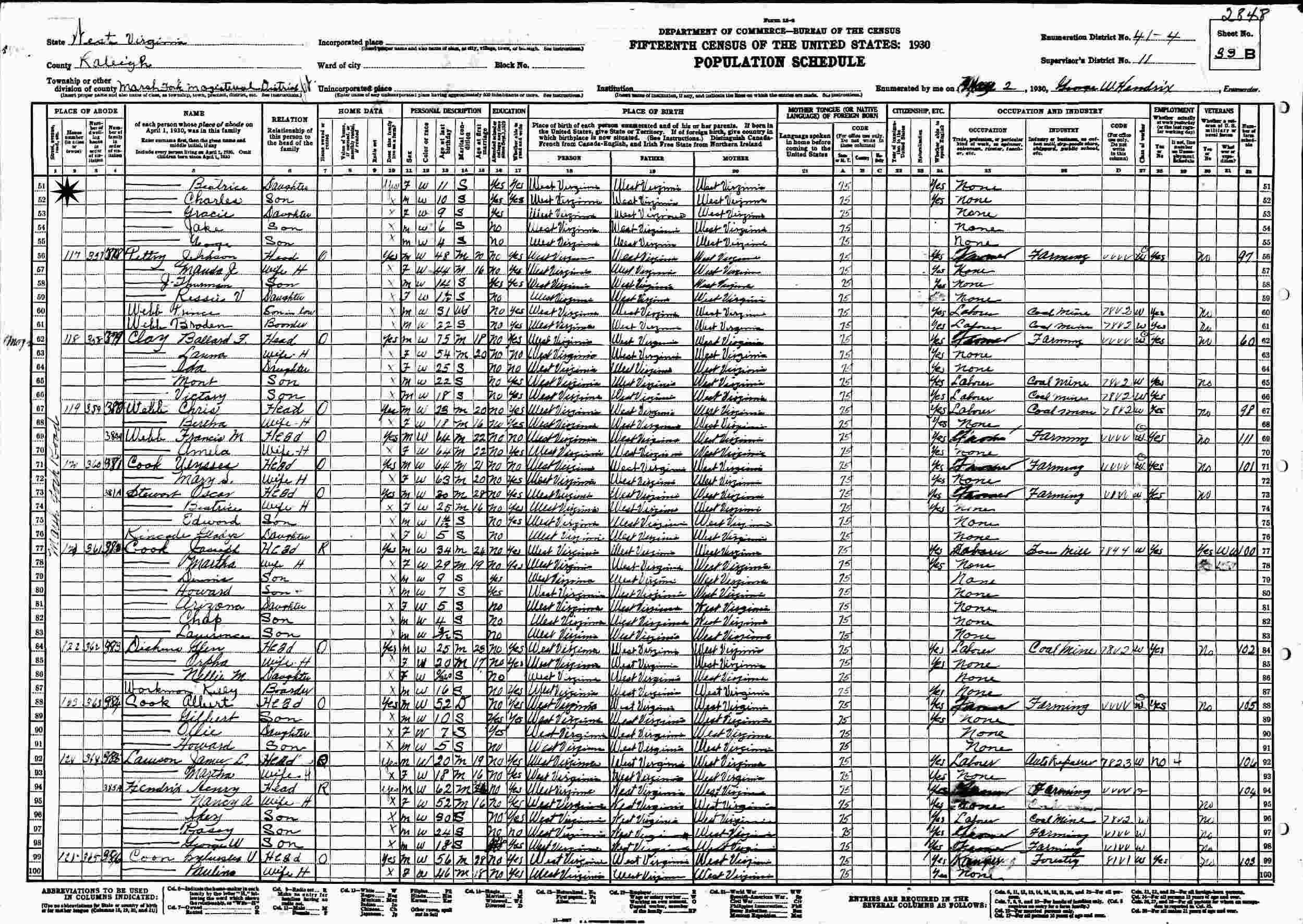May 2, 1930 - Supervisor's District 11, Enumeration District 41-4, Marsh Fork Magisterial District, Raleigh County, West Virginia.