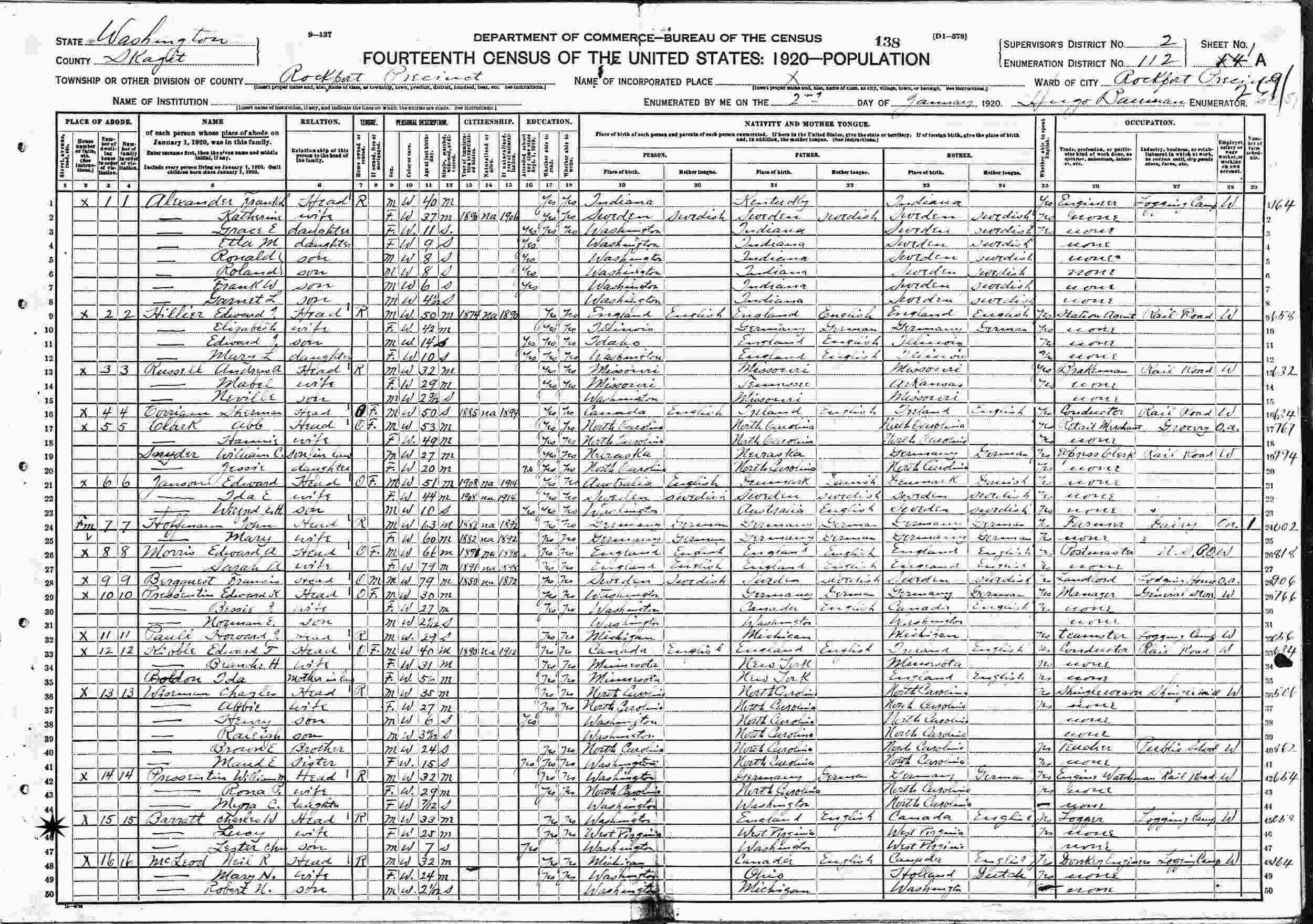 January 2, 1920 - Supervisor's District 2, Enumeration District 112, Rockport, Skagit County, Washington.